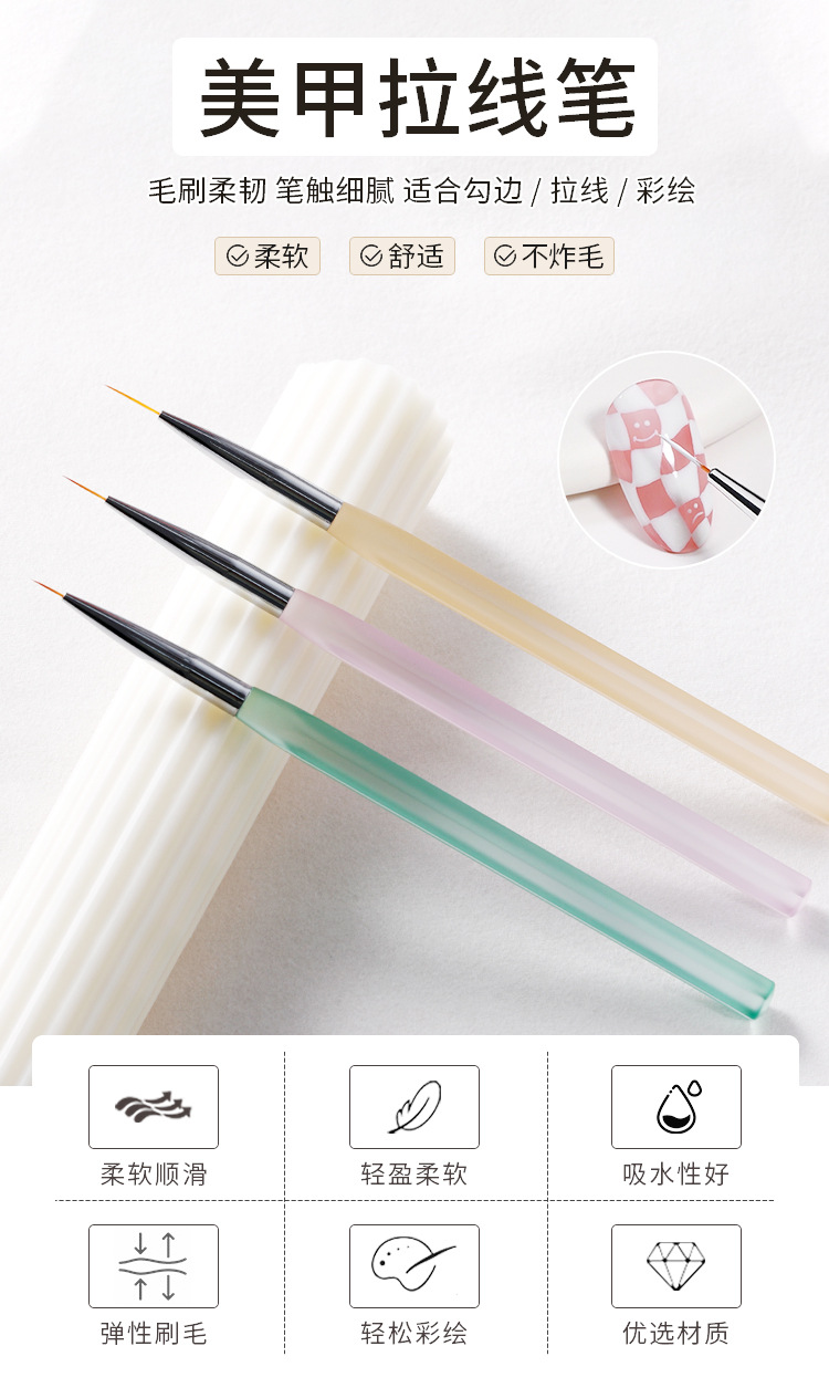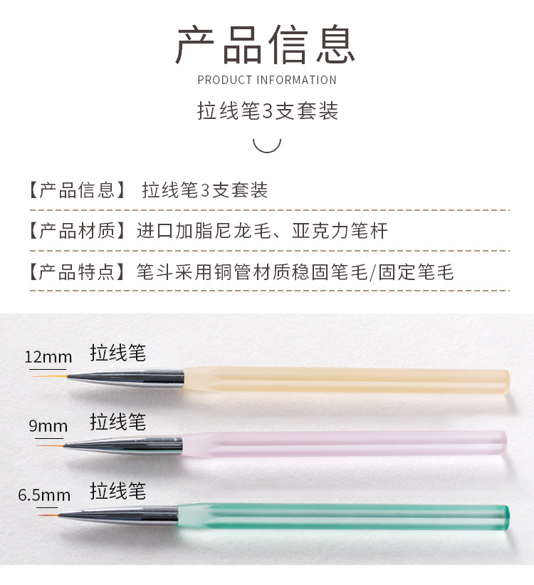 368三色六边磨砂杆3支拉线笔画花彩绘笔拉线笔美甲超细极细勾线笔