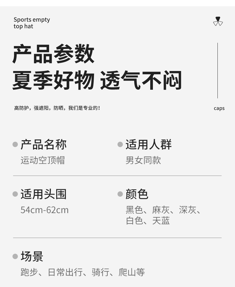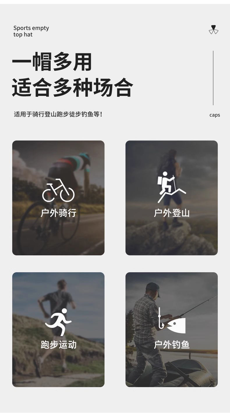 新款休闲空顶帽男士春夏季速干透气遮阳帽子女运动印花户外防晒帽