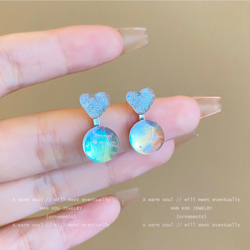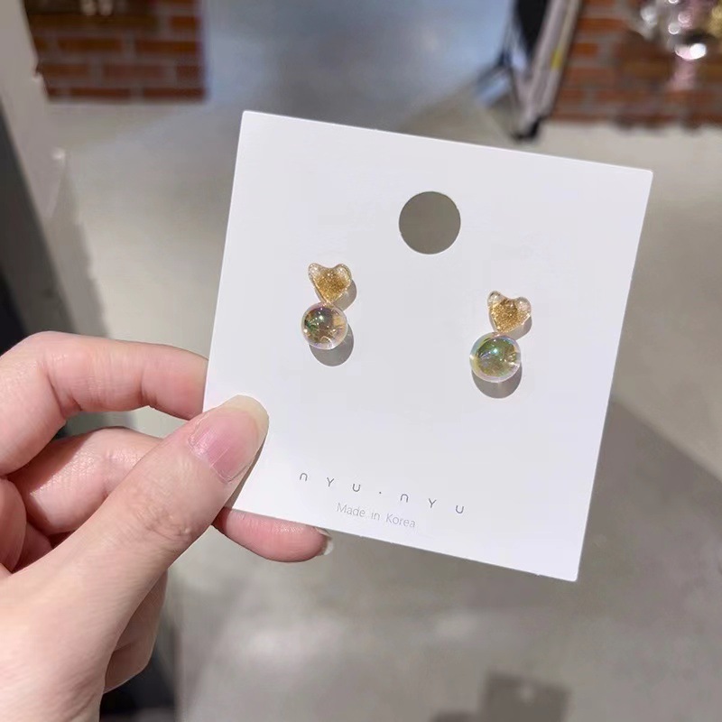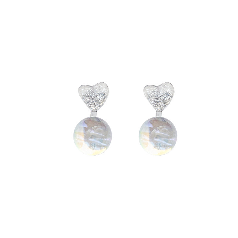 饰品925银针ins潮通透水晶圆珠吊坠耳环百搭气质猫眼石爱心耳环女