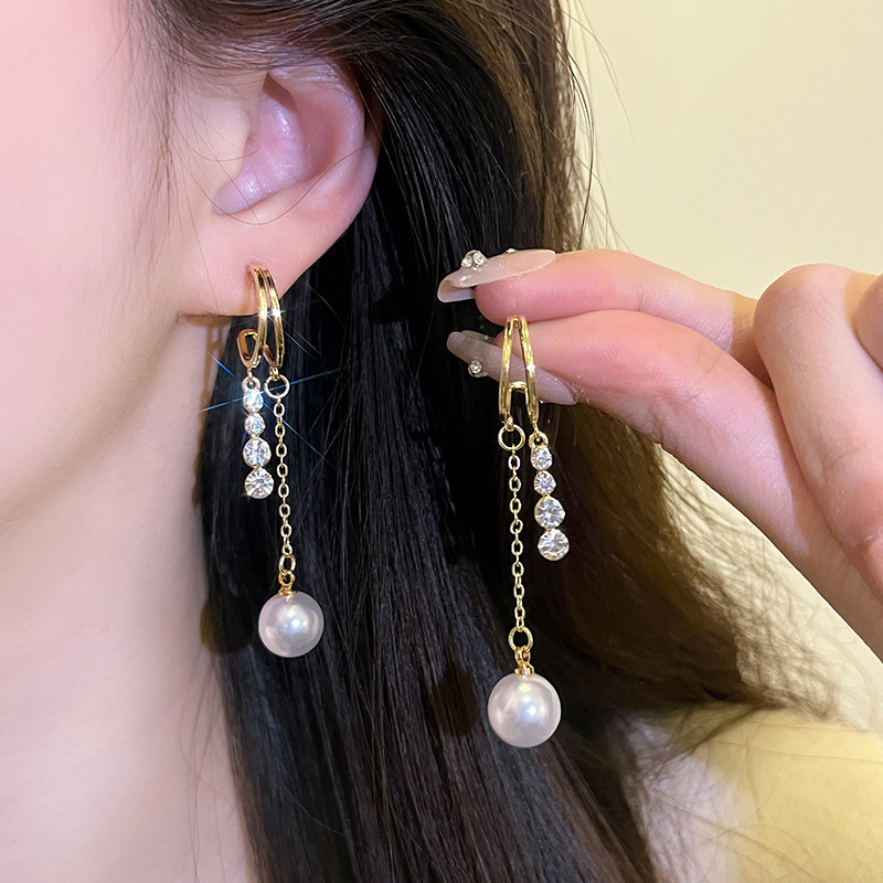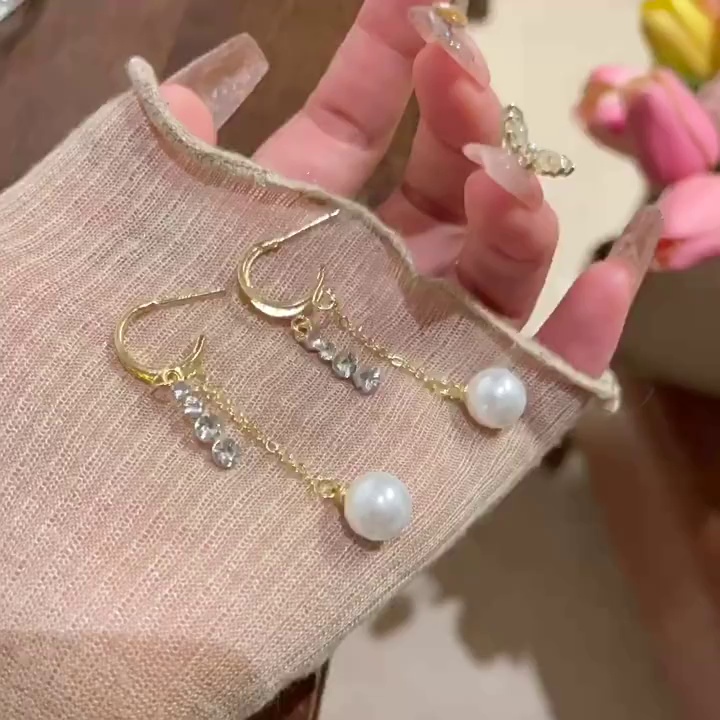 饰品高级感精致锆石耳钉网红耳饰S925银针小众长款流苏珍珠耳环女