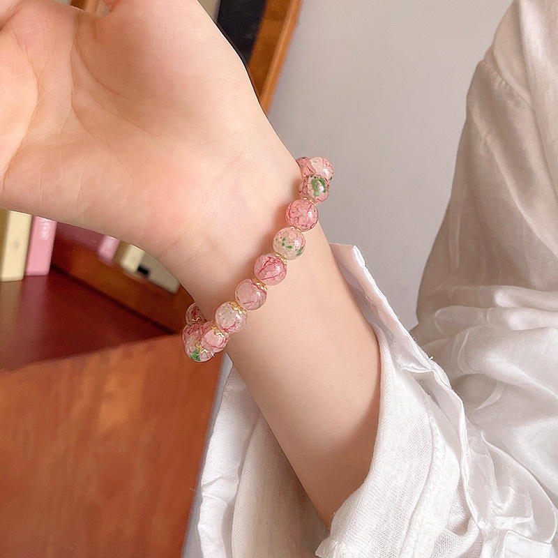 甜美时尚百搭撞色手串爆款网红手饰批发中国风樱花琉璃串珠手链女