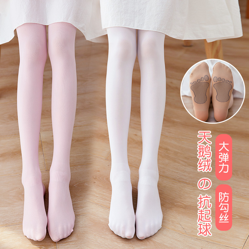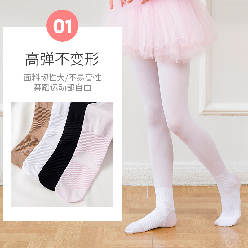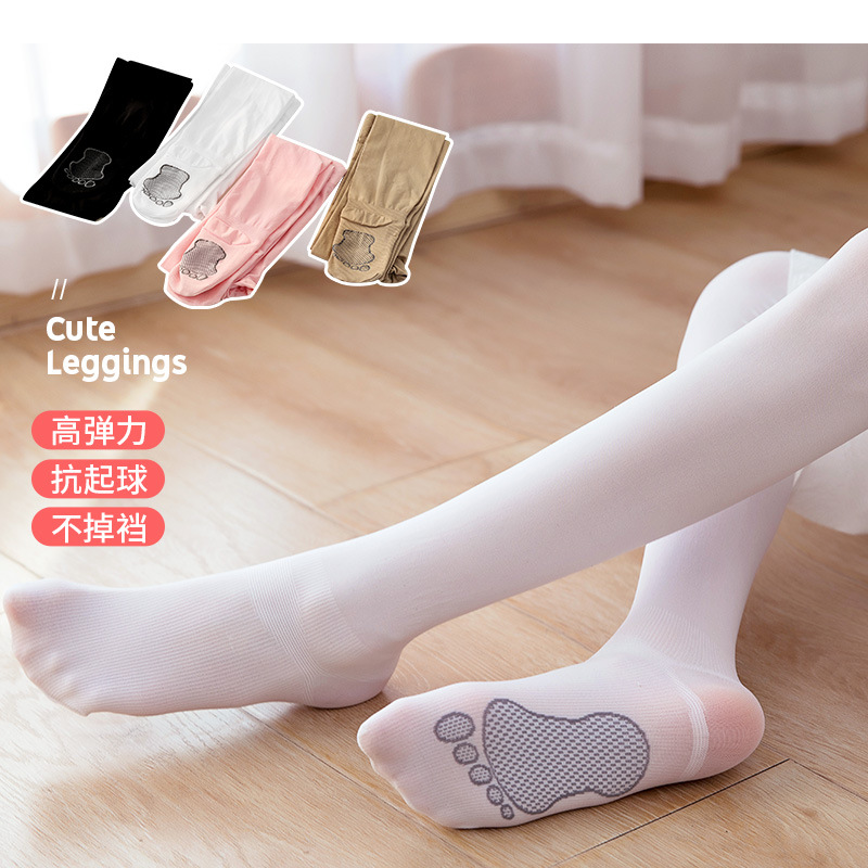 高档儿童舞蹈袜防扭伤白色夏季薄款连裤袜高弹脚底防滑芭蕾打底袜