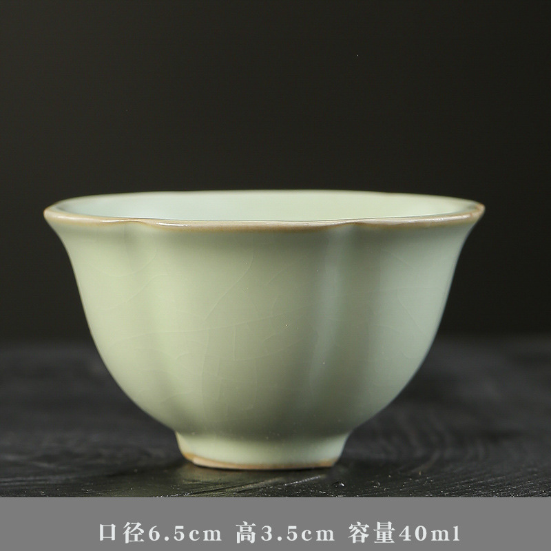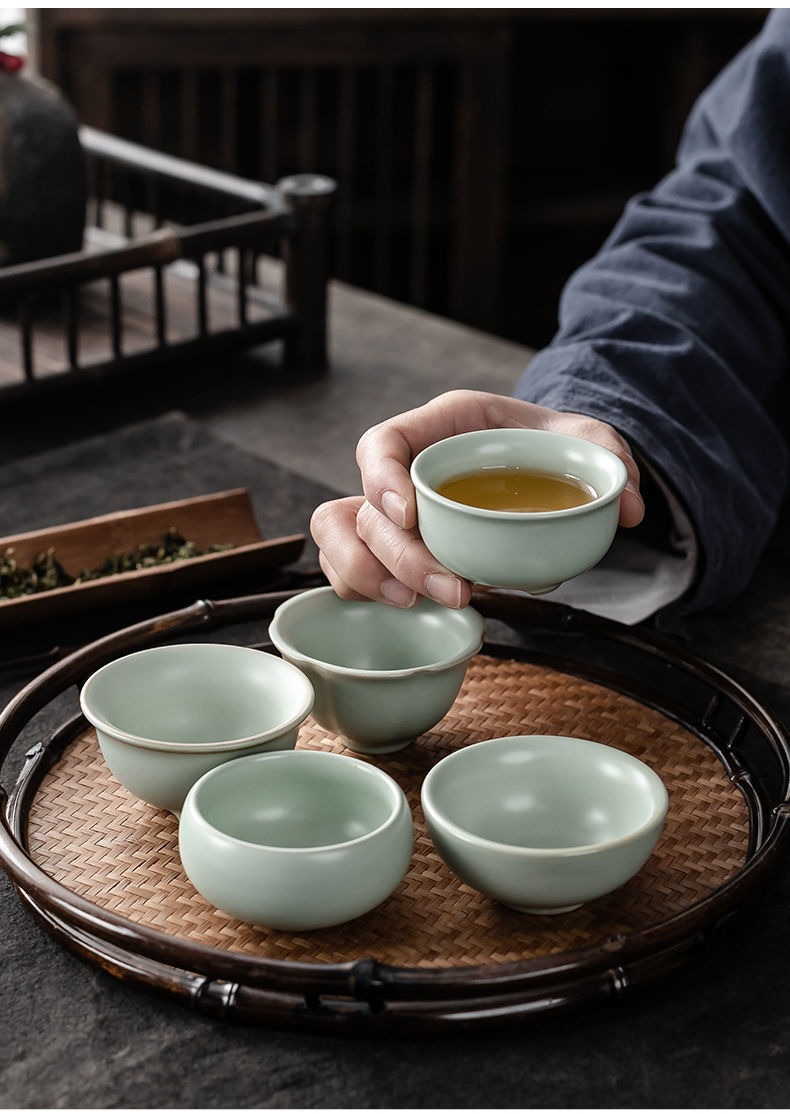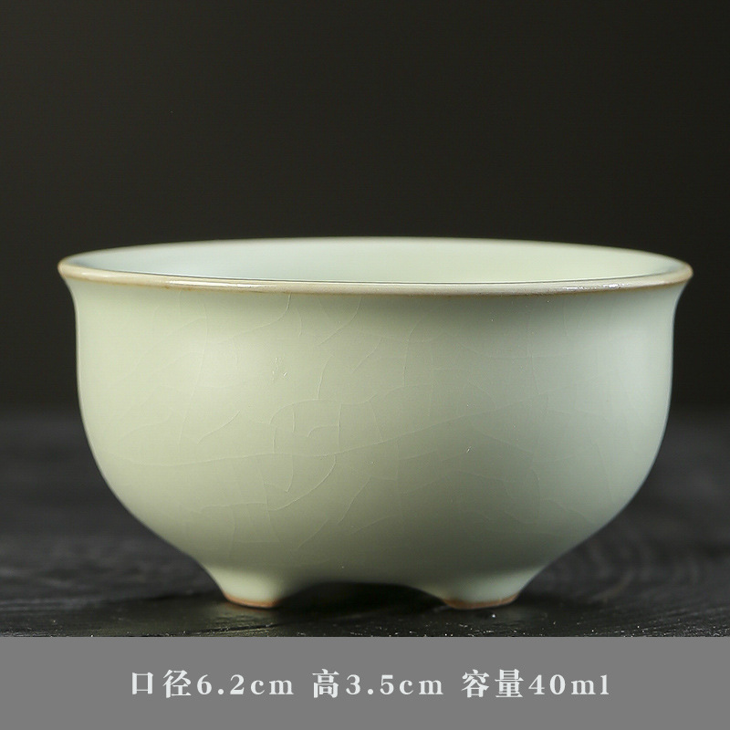 汝窑主人杯冰裂可养品茗杯日式单杯开片个人茶盏汝瓷功夫斗笠茶杯