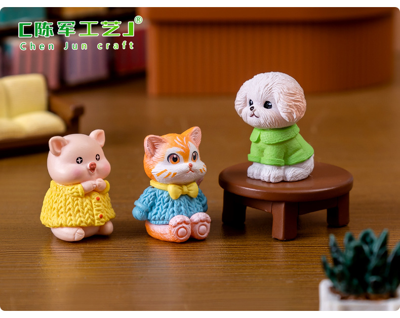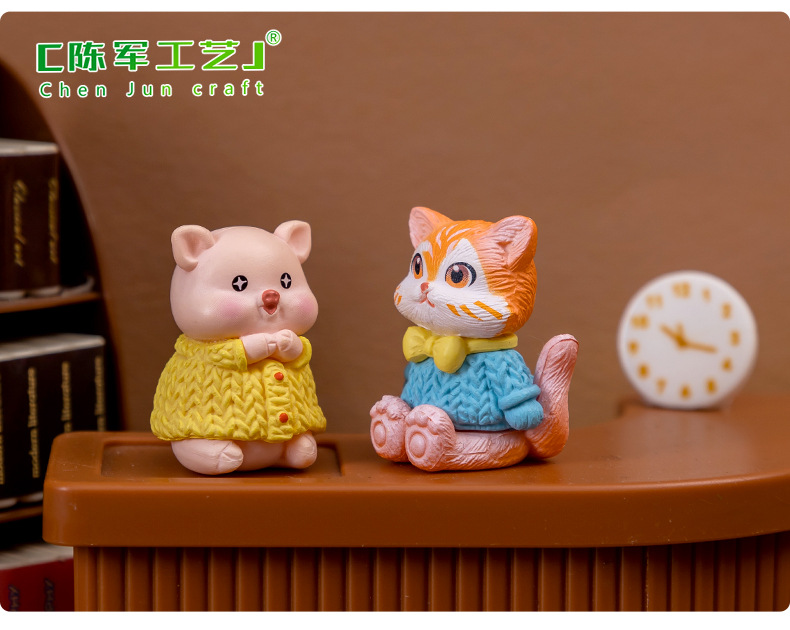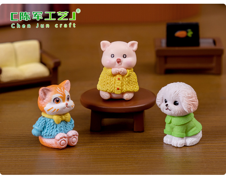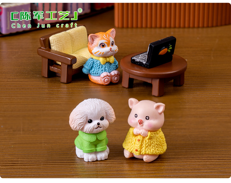 微景观创意可爱萌小猪狗猫动物公仔娃屋装饰品配件车载桌面小摆件