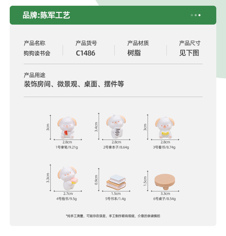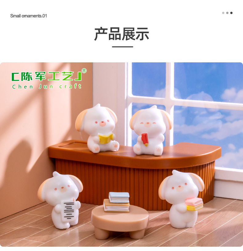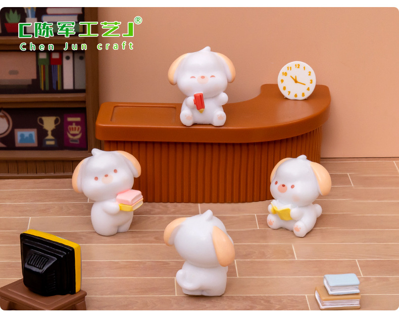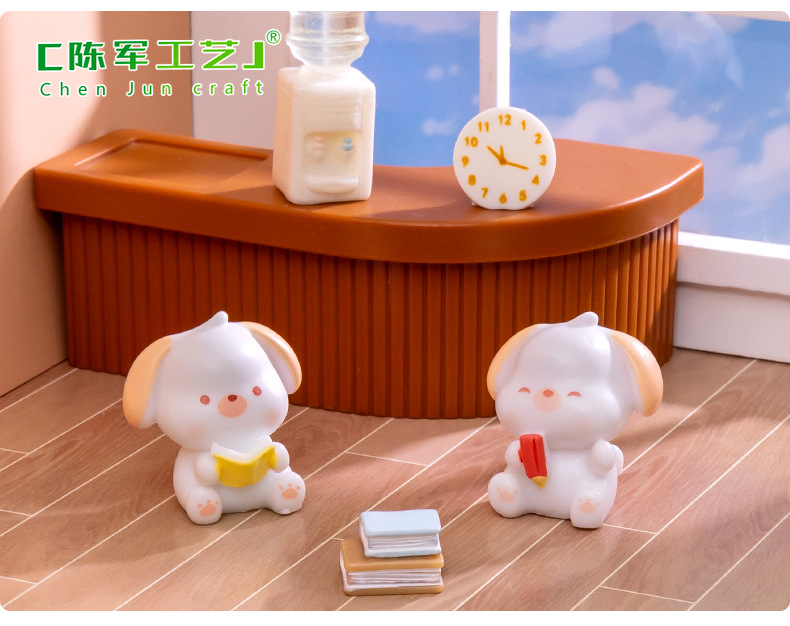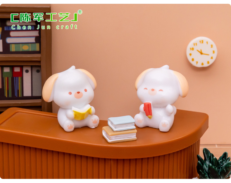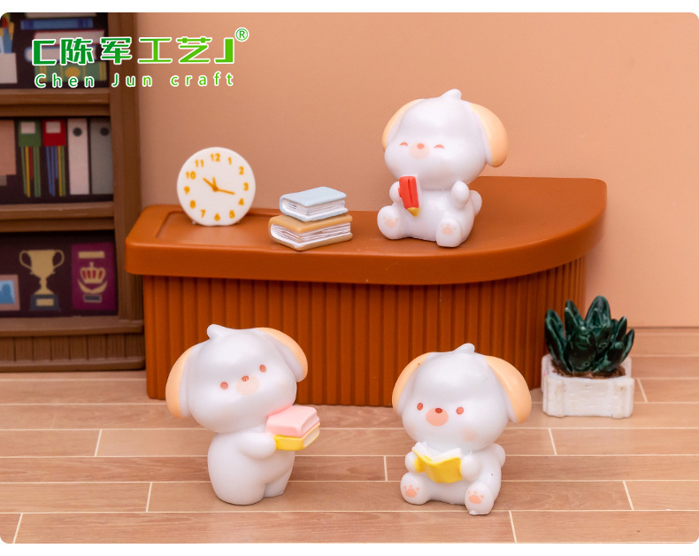 微景观创意可爱读书小狗公仔 DIY娃娃屋装饰品配件汽车桌面小摆件