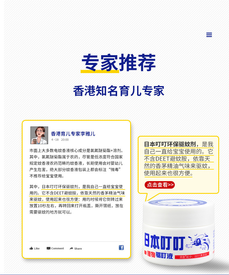 日本叮叮驱蚊剂植物驱叮液防蚊虫叮咬驱蚊神器室内户外官方旗舰店