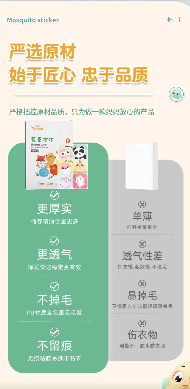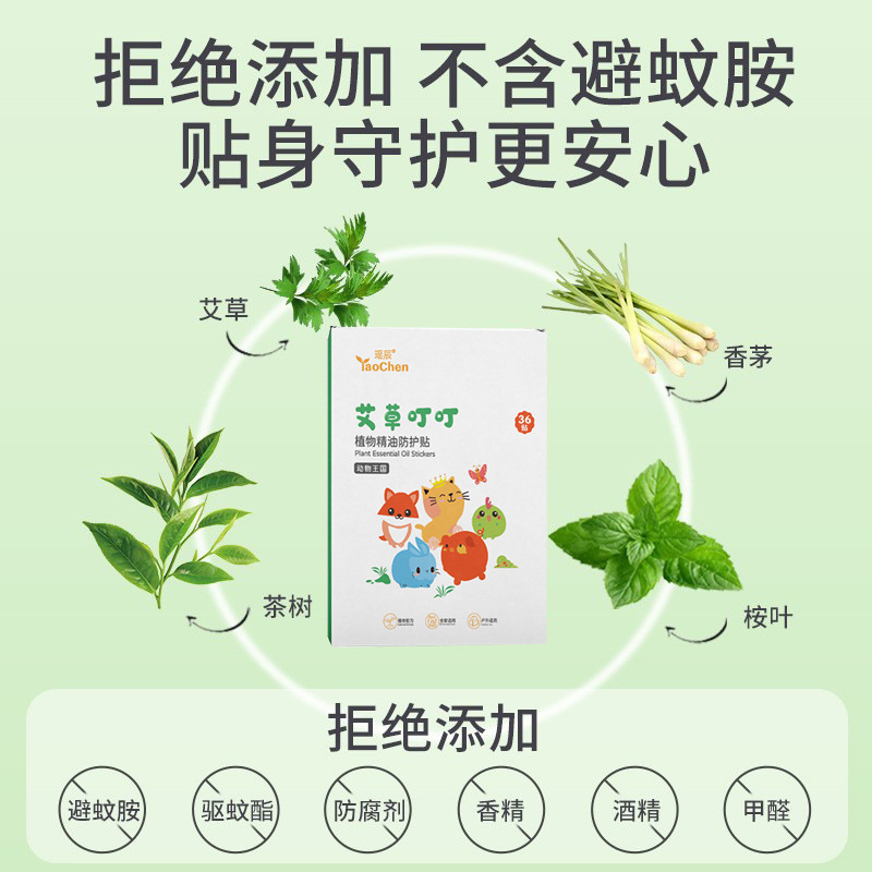 瑶辰艾草叮叮贴夏季露营防护贴驱防叮咬贴蚊虫家用卡通儿童精油贴