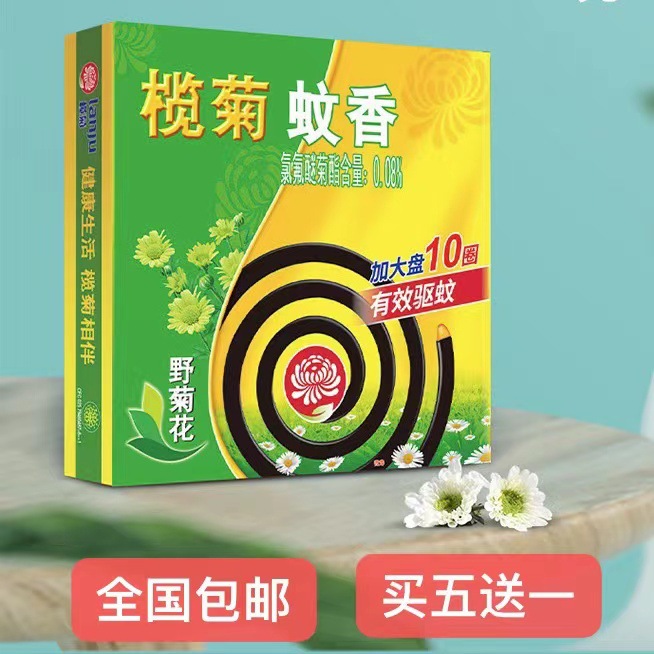 包邮榄菊蚊香清香整箱家用室内户外驱蚊加大圈 10圈/盒 买五送一