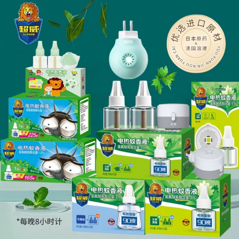 超威蚊香液无香电热蚊香液艾草电蚊香液驱蚊液补充液套装防蚊液