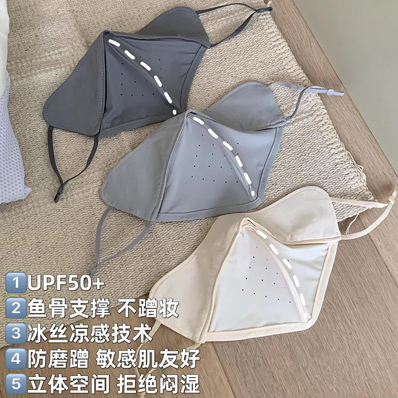 冰丝凉感3D立体防晒口罩防紫外线女夏季鱼骨支撑透气护眼角脸基尼