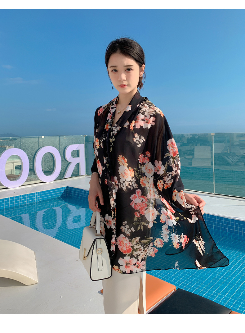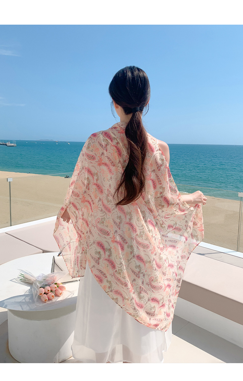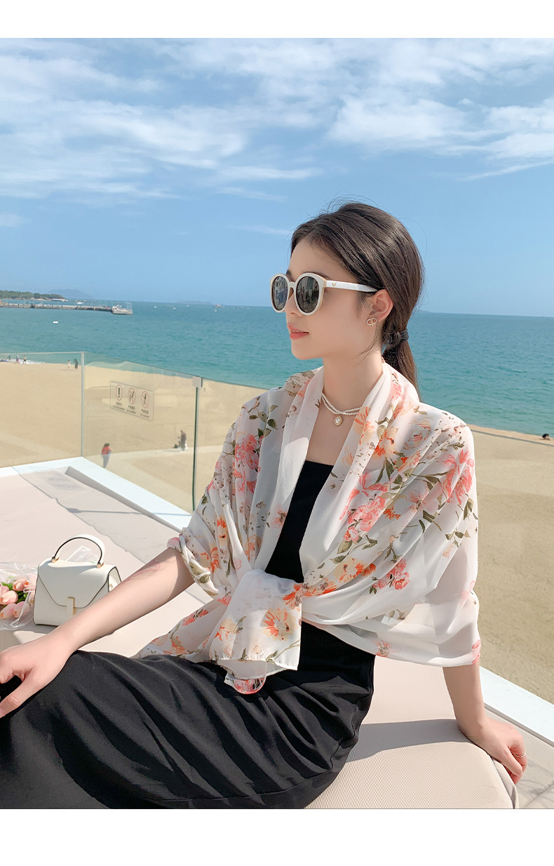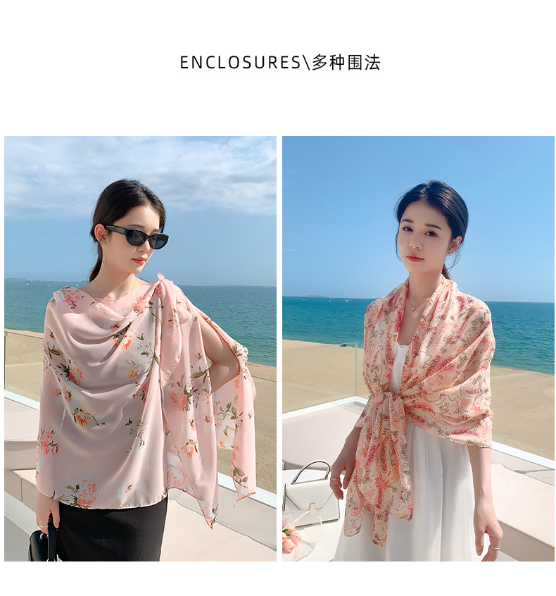 韩版甜美碎花防晒百搭时尚丝巾薄款披肩沙滩长巾海边度假拍照纱巾