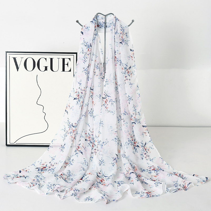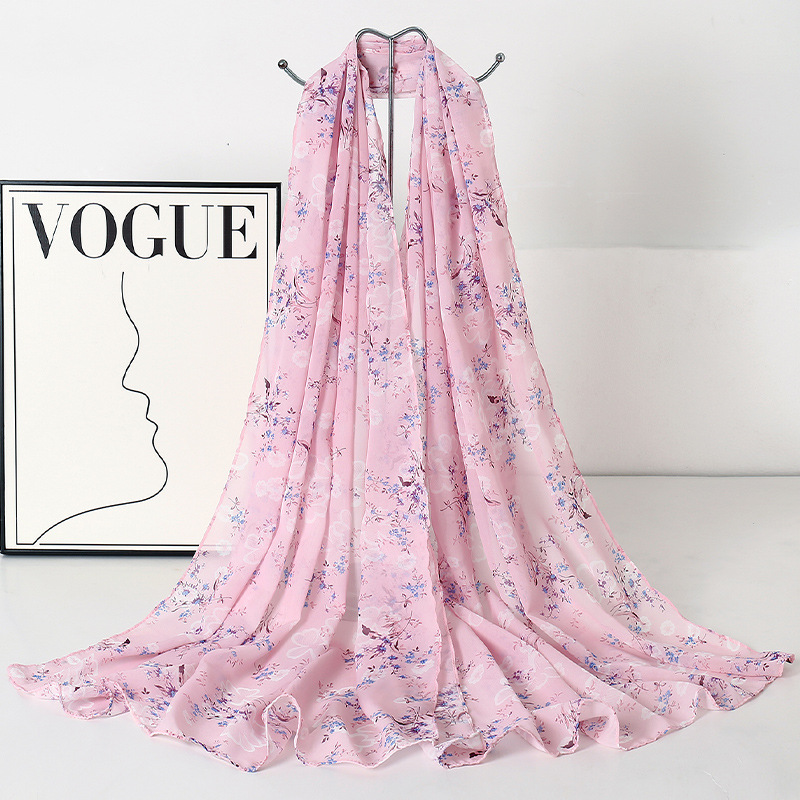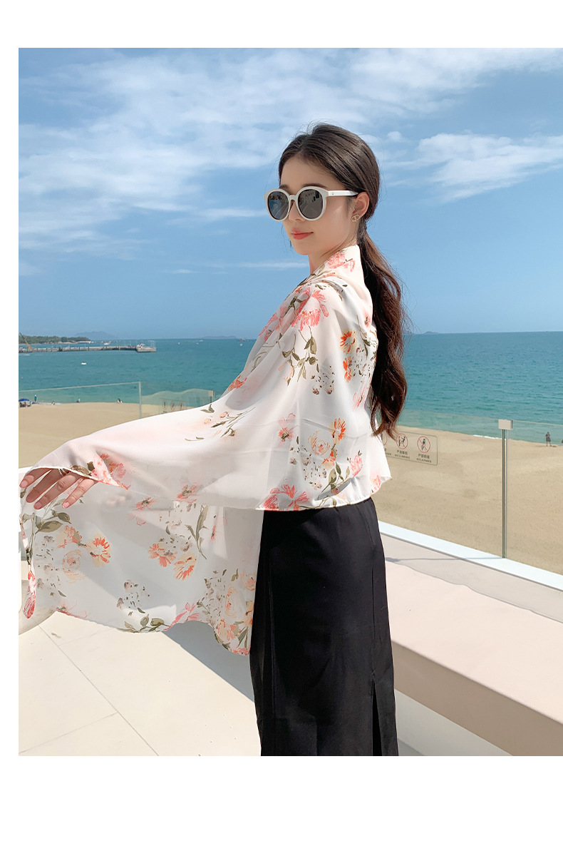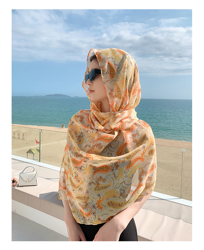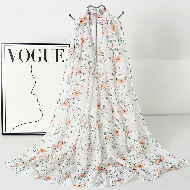 韩版甜美碎花防晒百搭时尚丝巾薄款披肩沙滩长巾海边度假拍照纱巾
