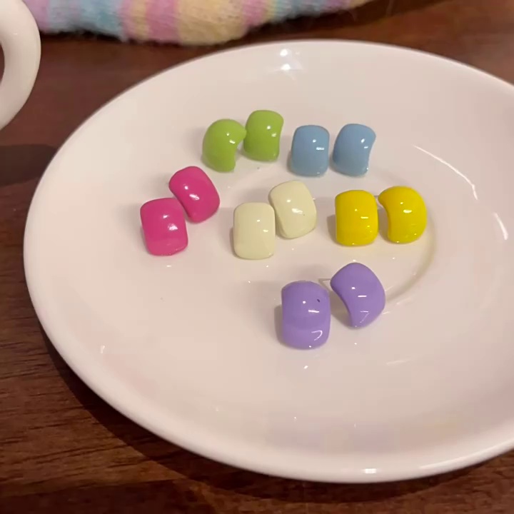 彩色小豆豆耳钉女甜美可爱C形耳环耳饰S925银针夏季小清新多巴胺