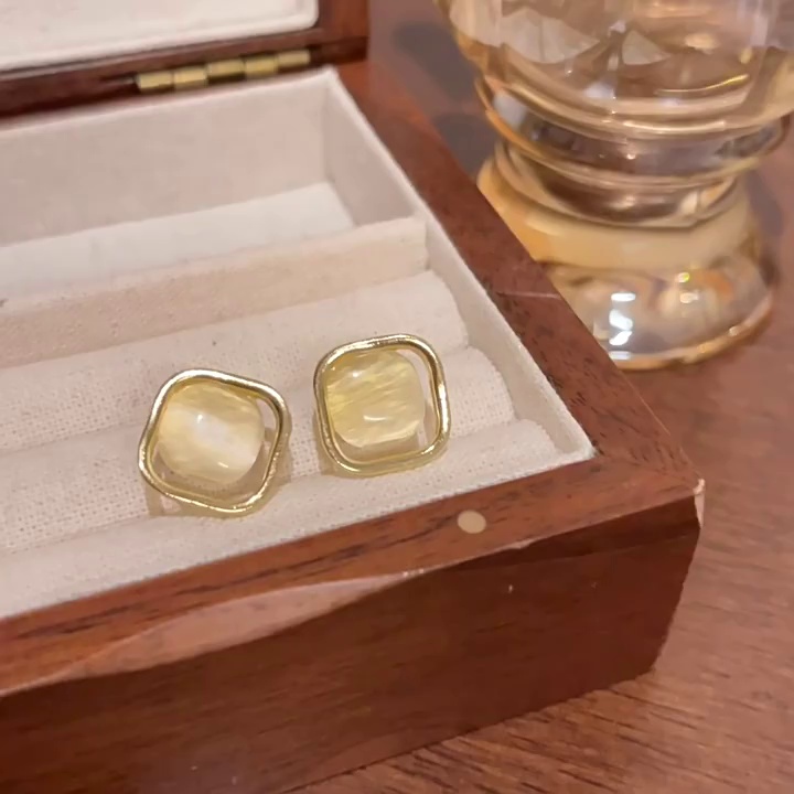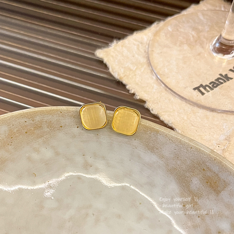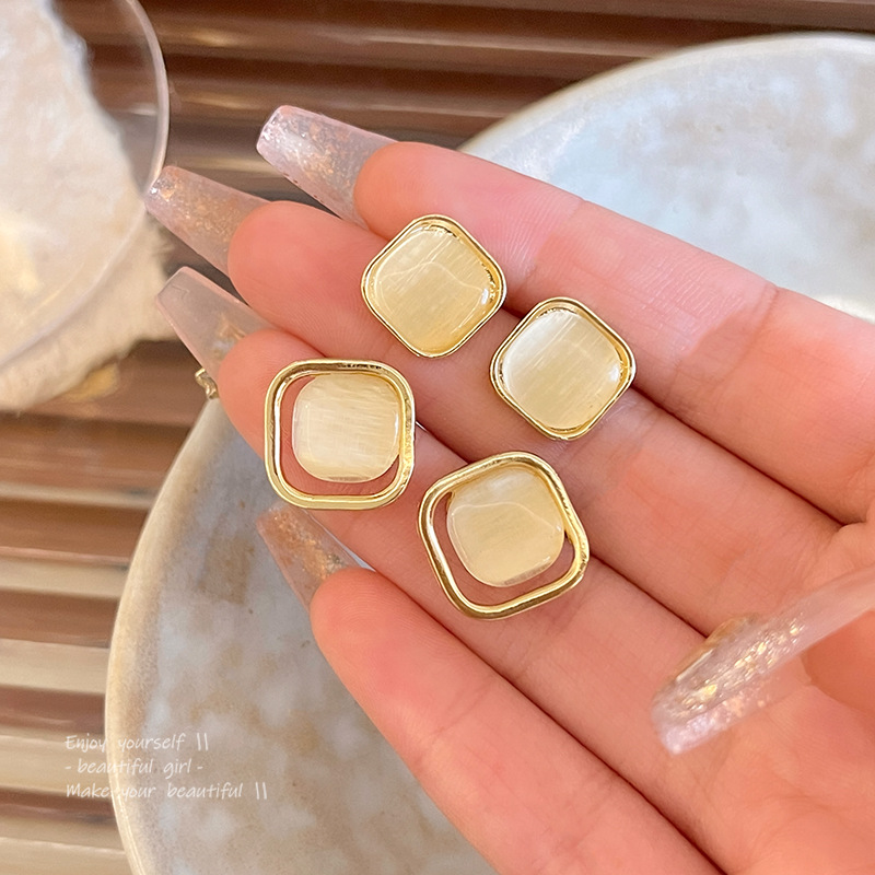 百搭高级感几何形耳环耳饰S925银针小众简约气质猫眼石耳钉女