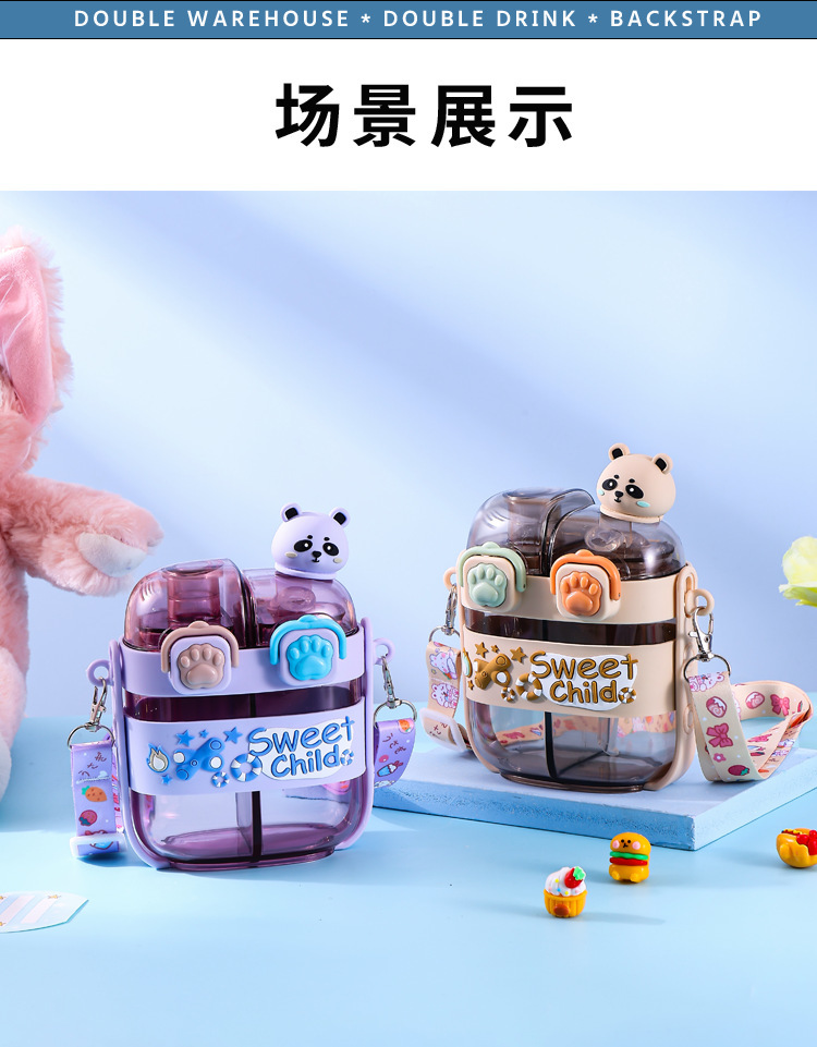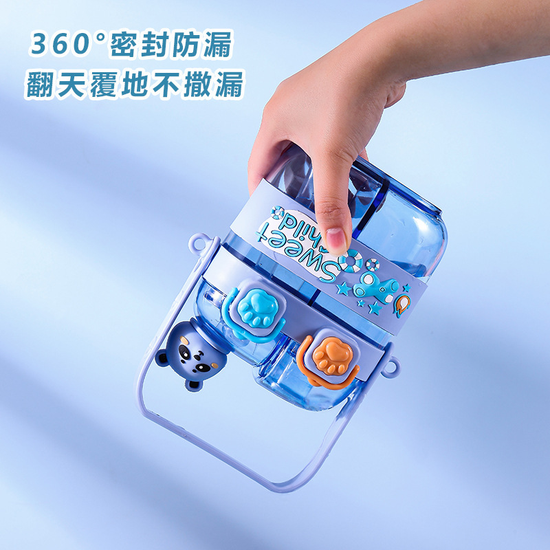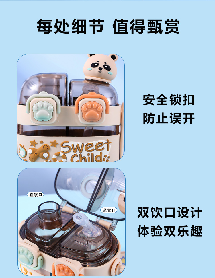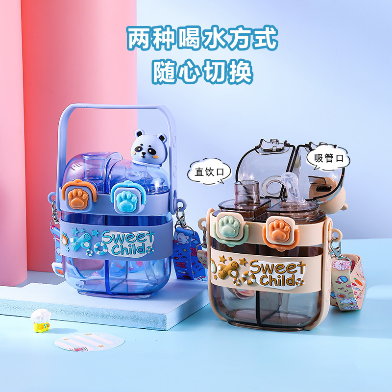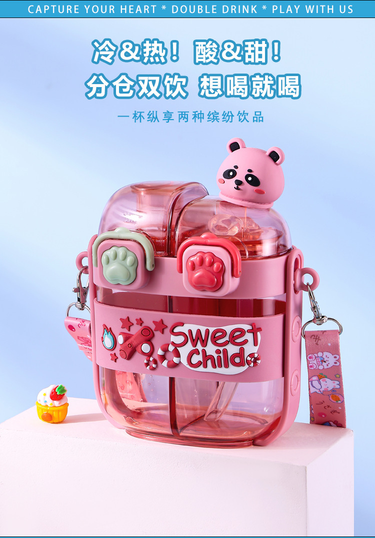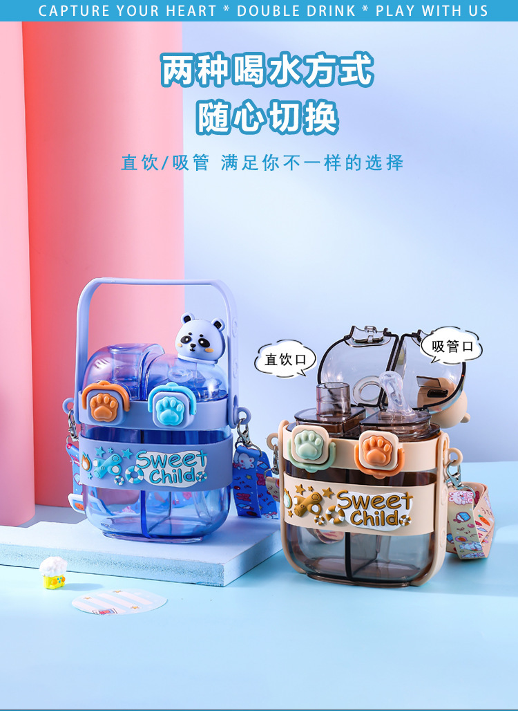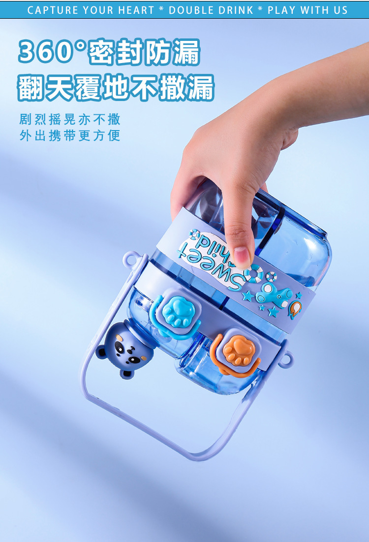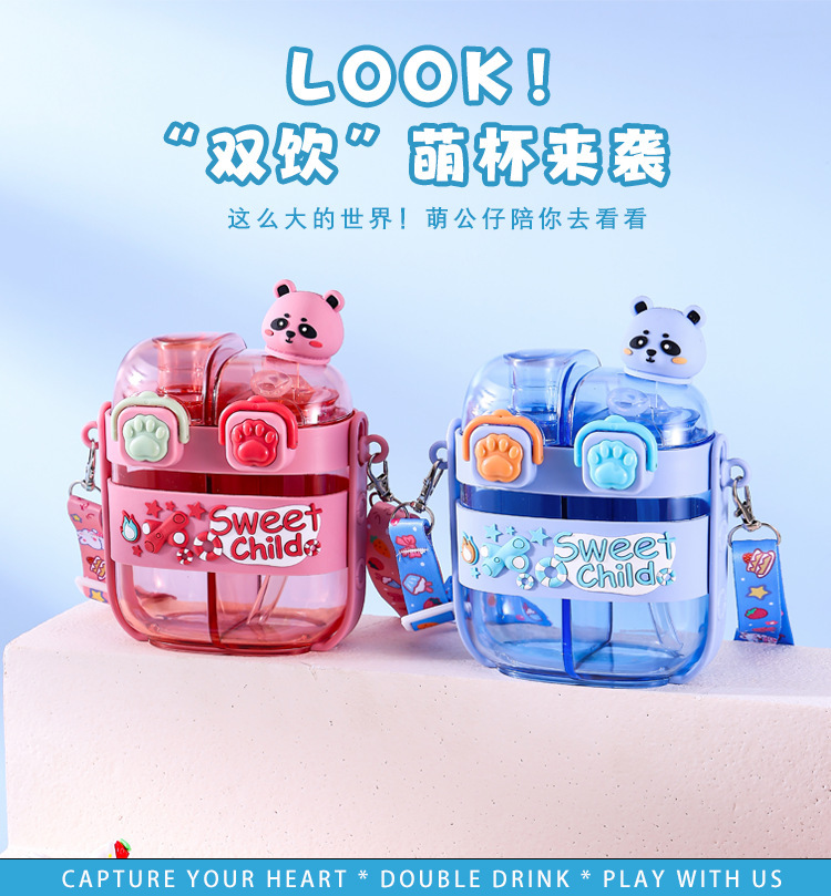 儿童水杯夏季高颜值卡通儿童双饮水杯学生吸管杯大容量便携塑料杯