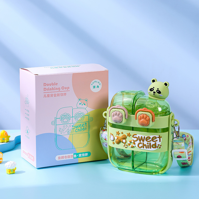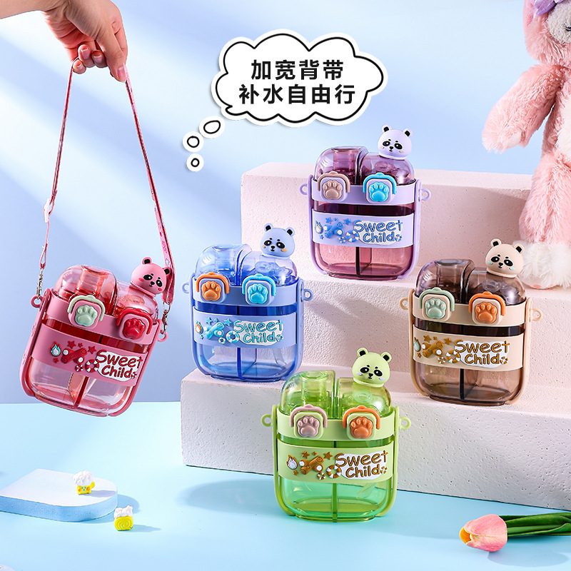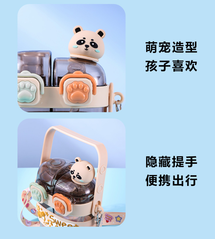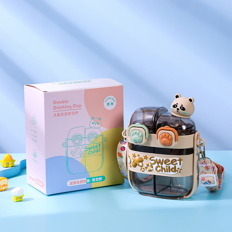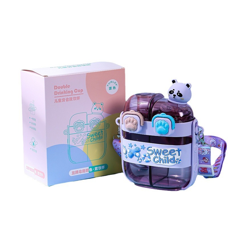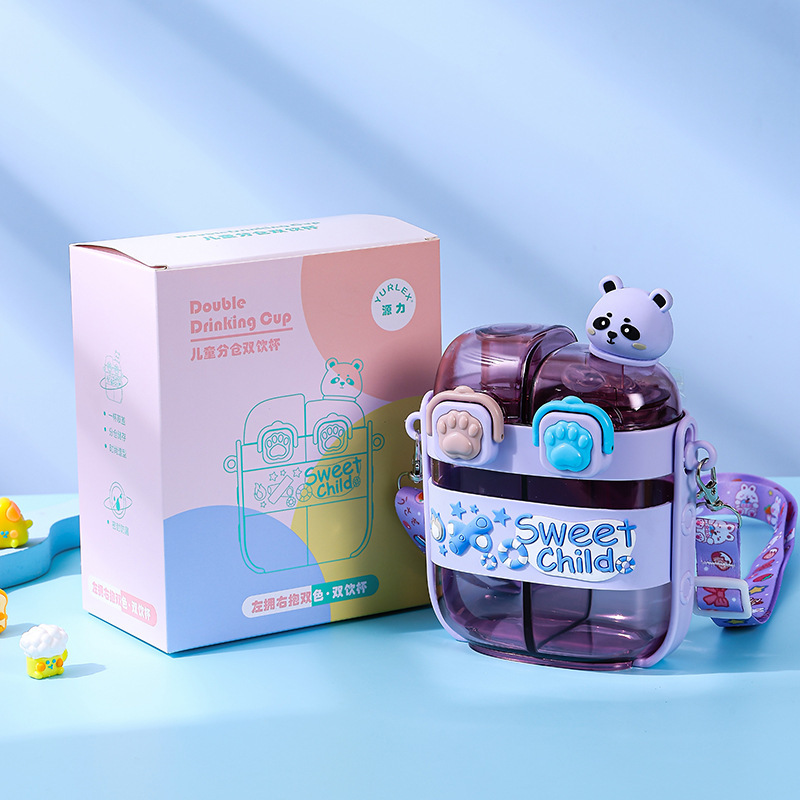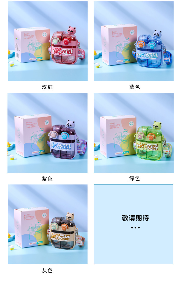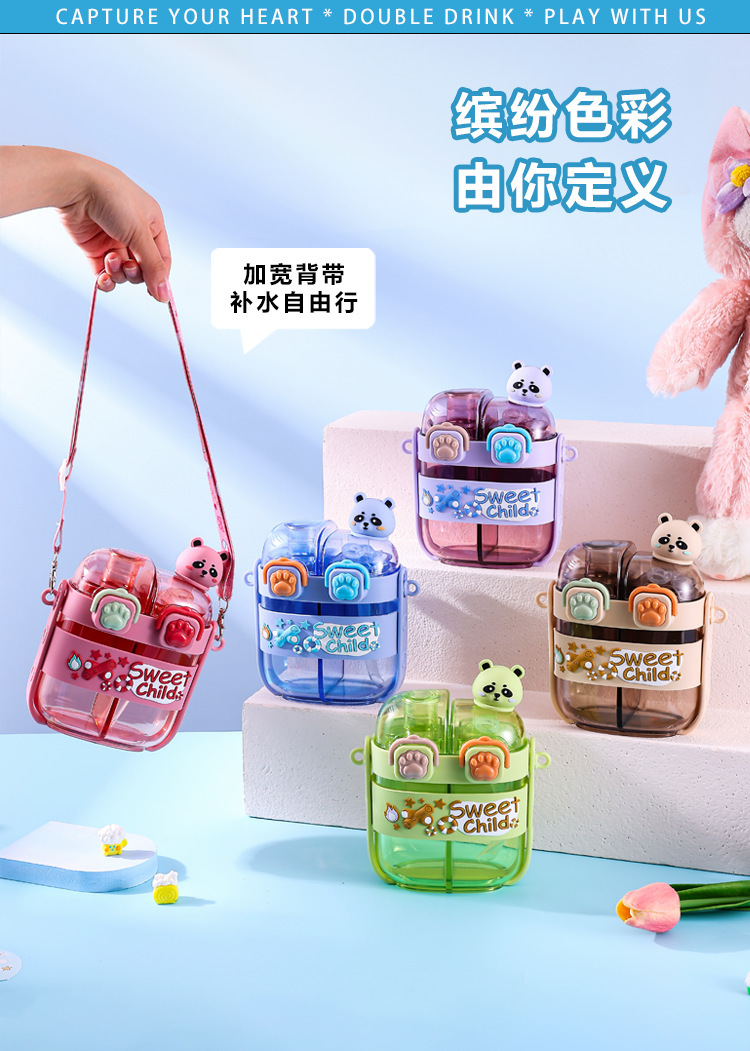 儿童水杯夏季高颜值卡通儿童双饮水杯学生吸管杯大容量便携塑料杯