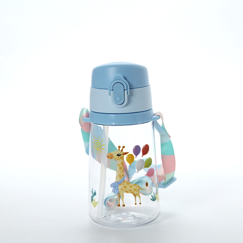 便携带提绳弹跳塑料杯 卡通挂绳便携吸管杯 幼儿园学饮杯