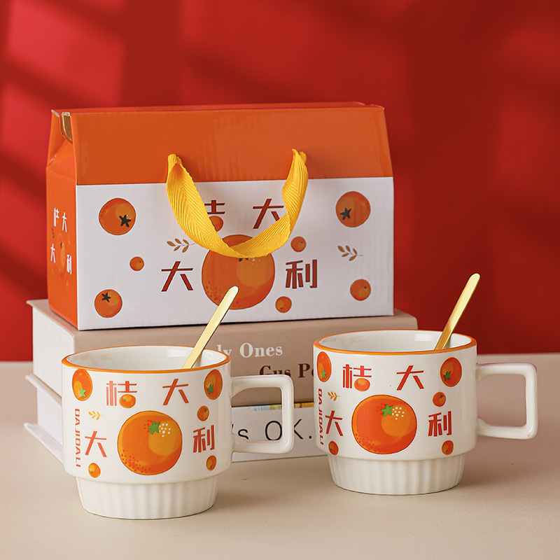 大吉大利伴手礼套装水杯创意马克杯礼盒陶瓷杯子结婚开业活动礼品