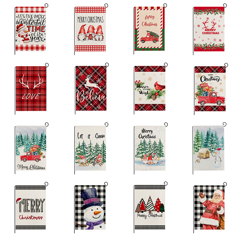 圣诞节花园旗庭院装饰亚麻双面节日旗帜跨境户外挂旗