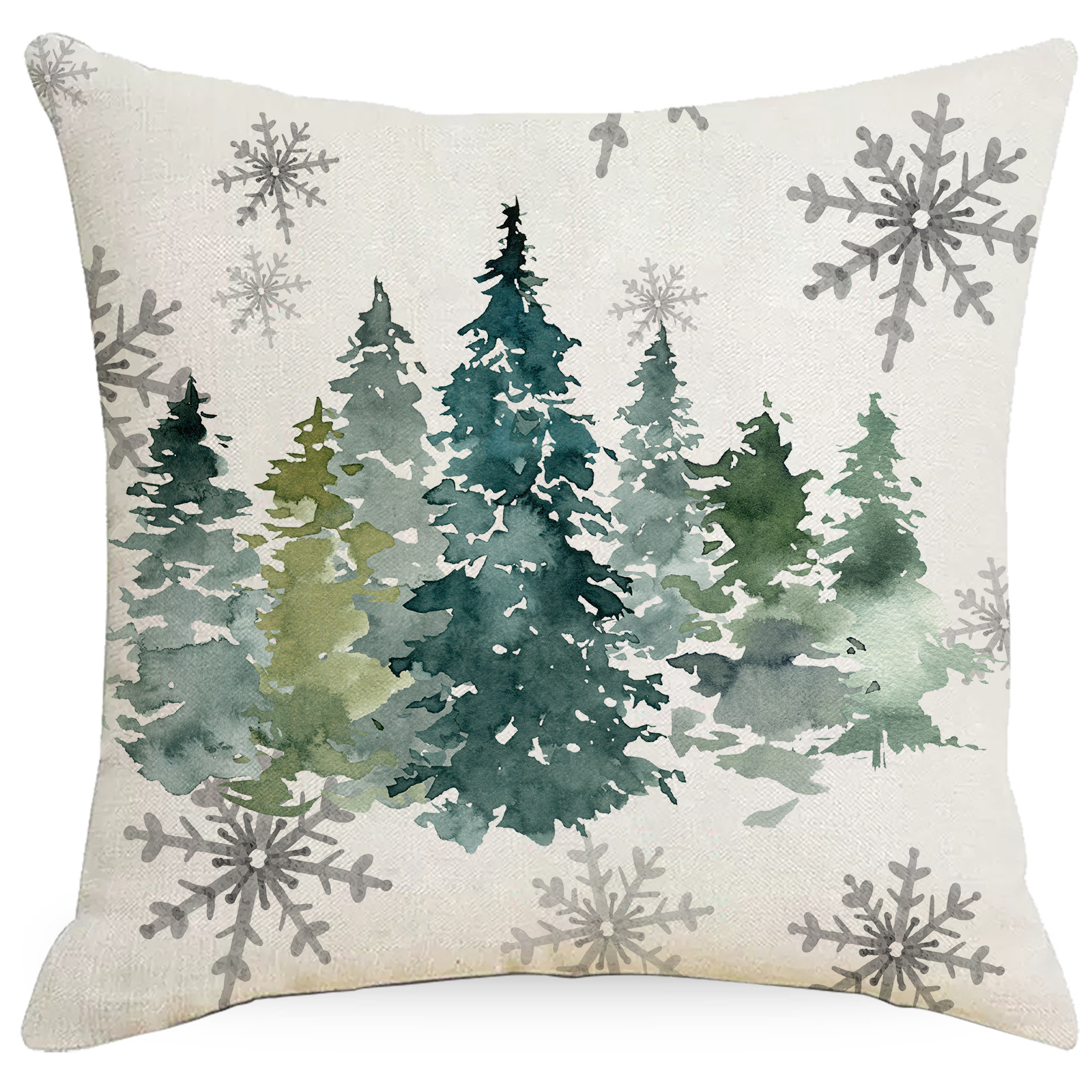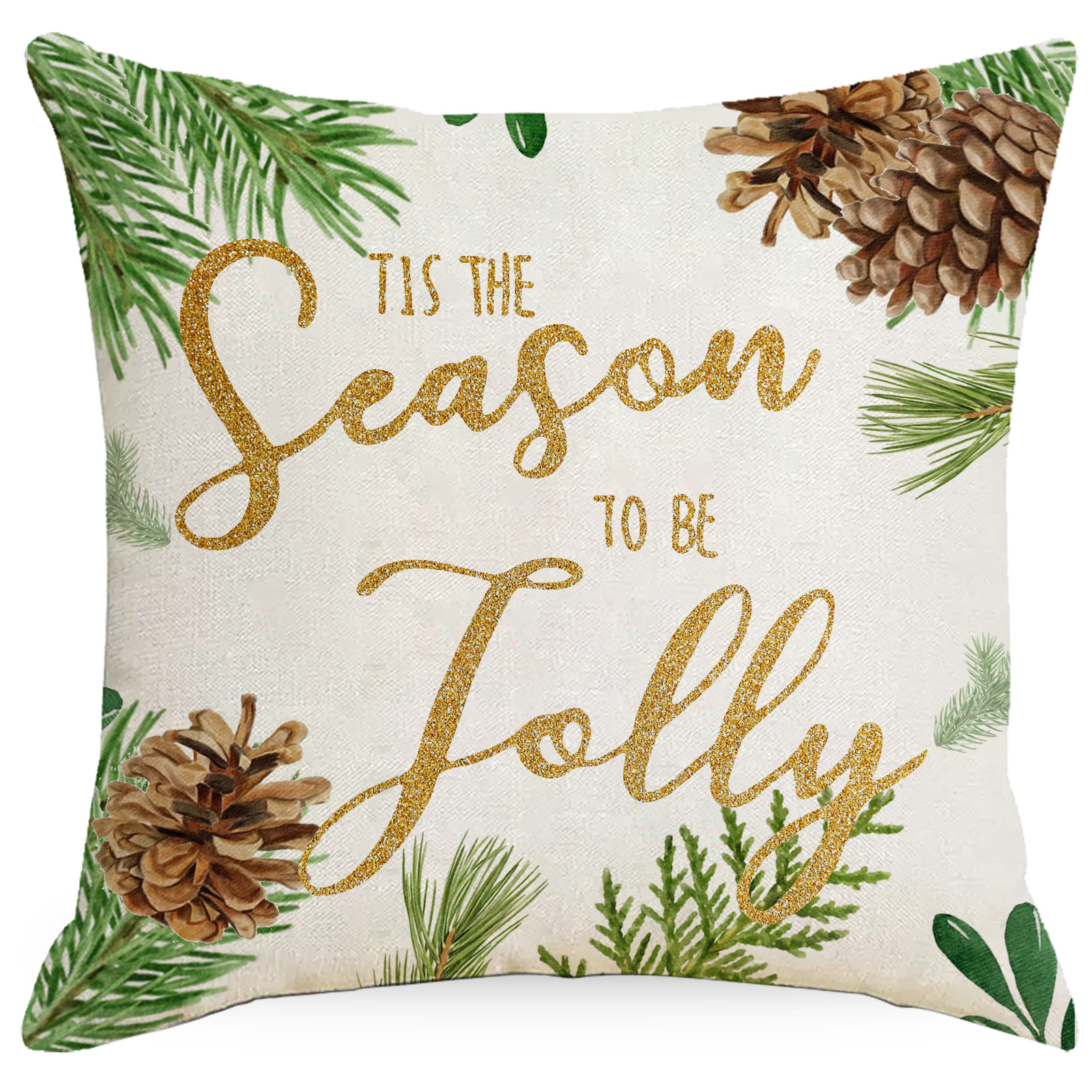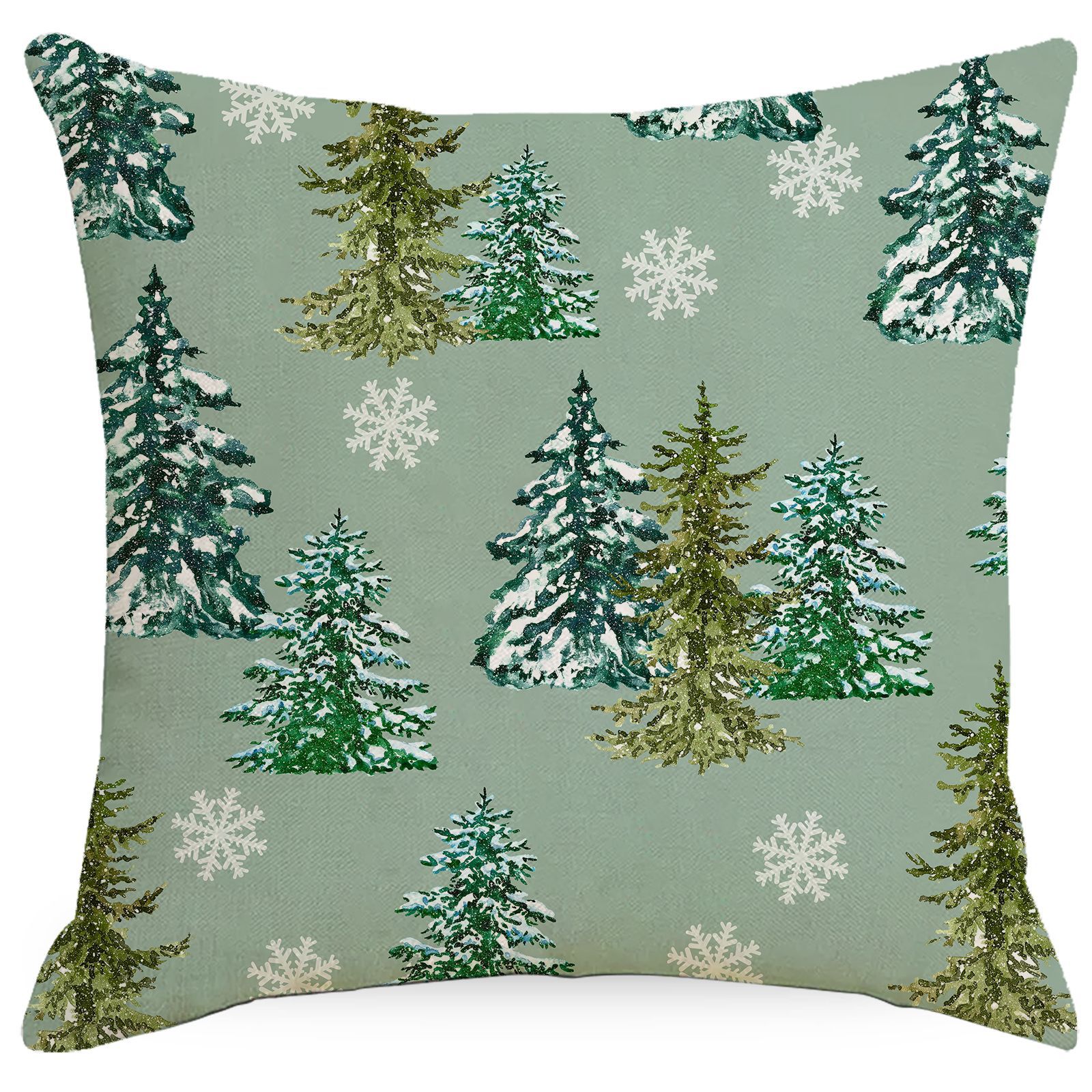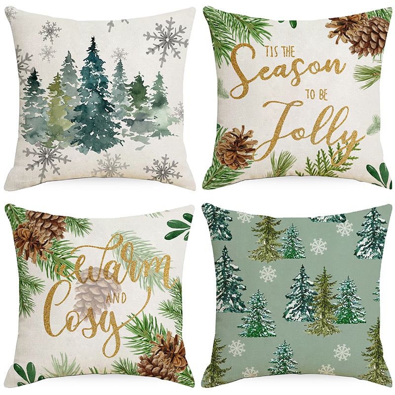 跨境圣诞抱枕套圣诞树亚麻印花沙发靠枕家居客厅靠垫厂家批发