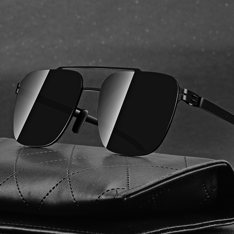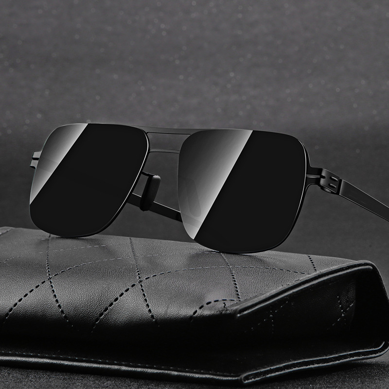 新款黑色复古简约太阳镜男金属不锈钢抖音同款墨镜女防晒眼镜批发