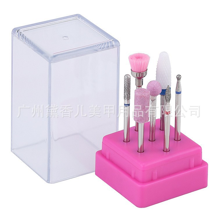 打磨头美甲钨钢套装卸甲前置处理镀钛打磨机头去死皮抛光工具盒装