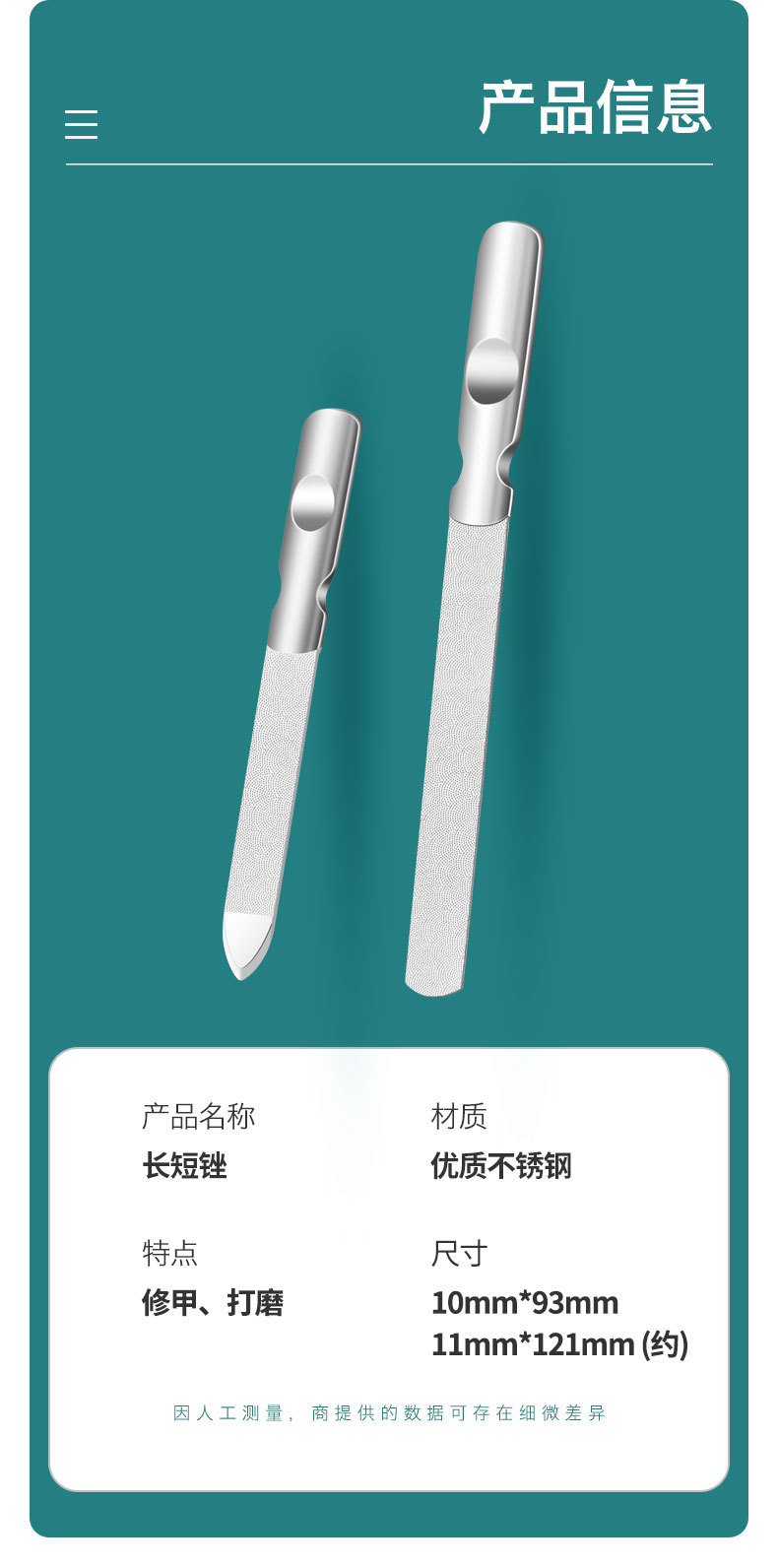 厂家直销不锈钢双面指甲锉刀指甲打磨搓条美甲砂条双面锉修甲工具