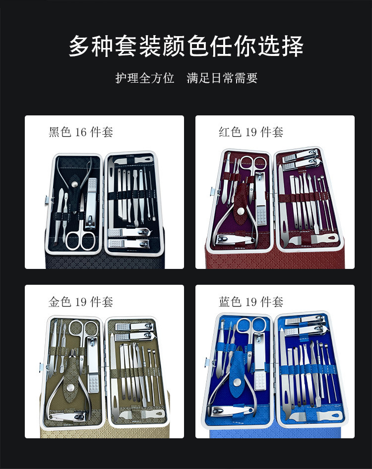 现货美甲19件套指甲刀套装家用修甲美甲工具套装全套指甲剪套装