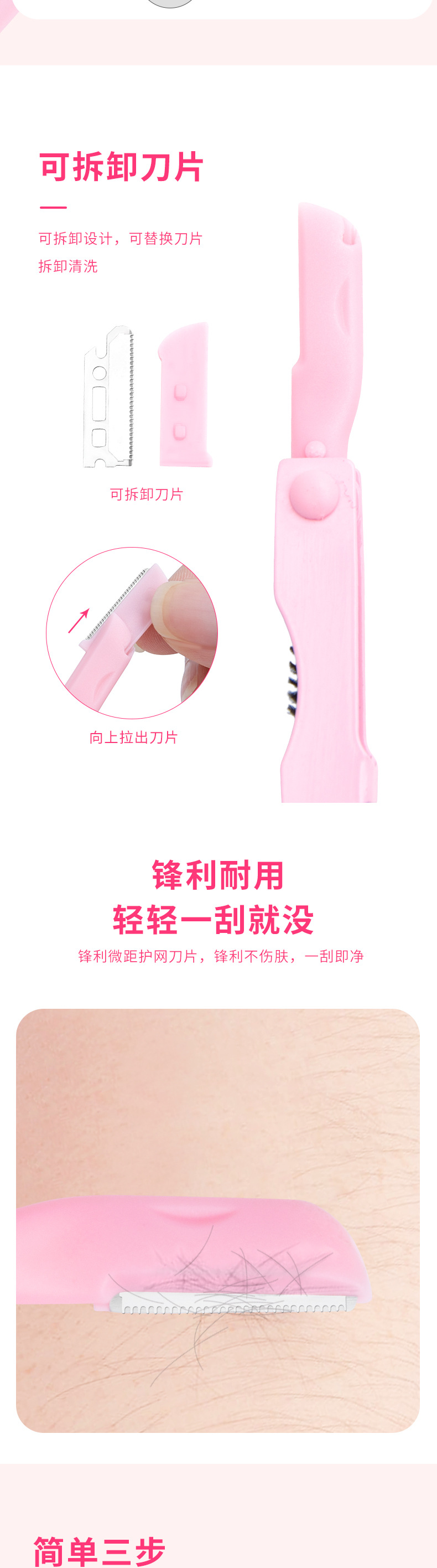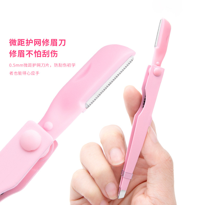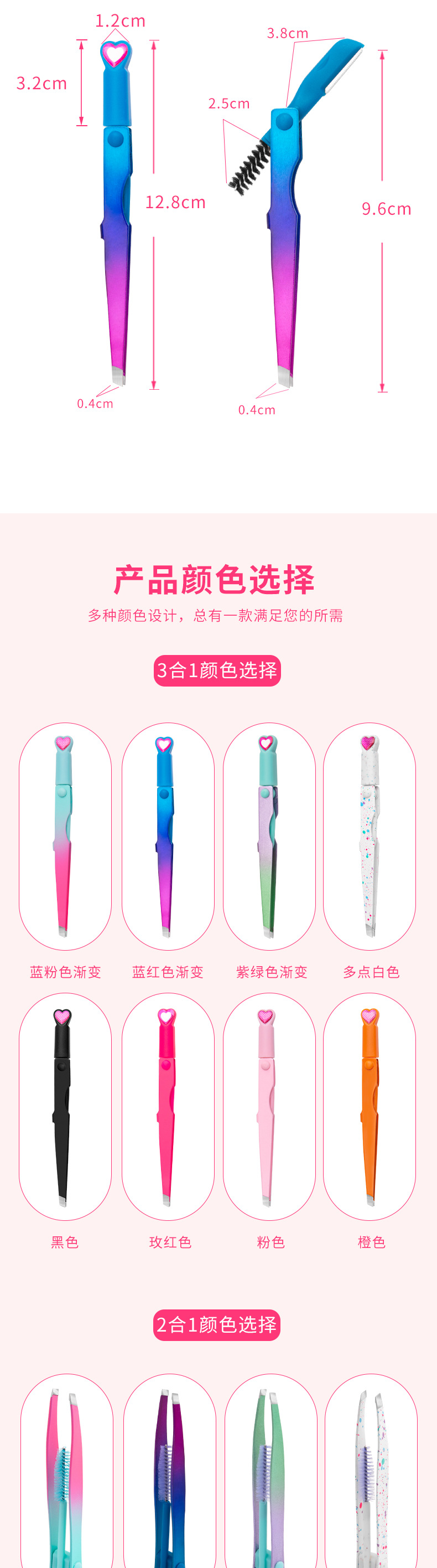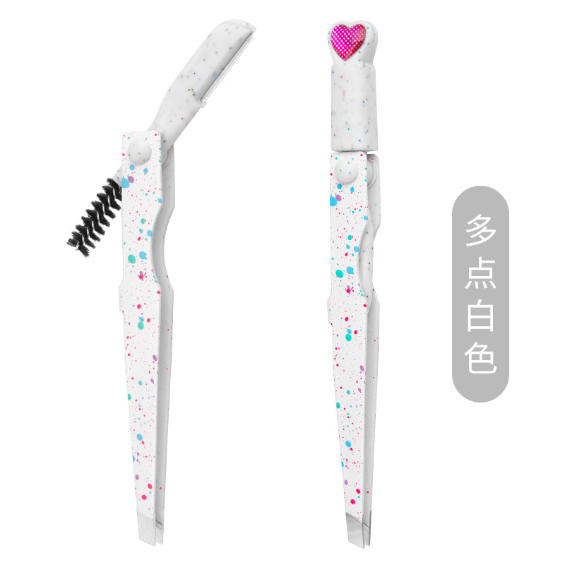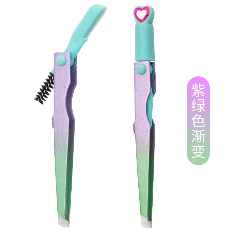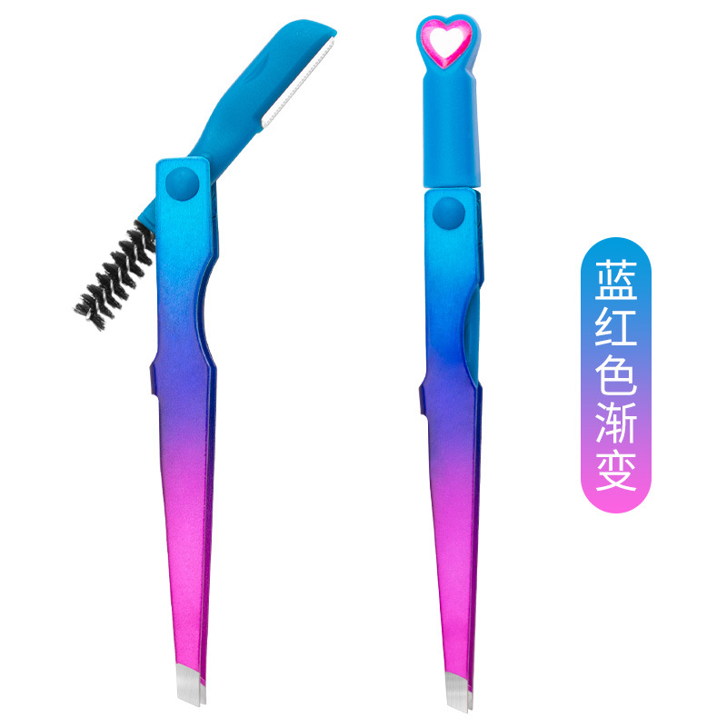 新款多功能3合1眉刷睫毛夹镊子不锈钢修眉刀折叠眉夹修眉工具