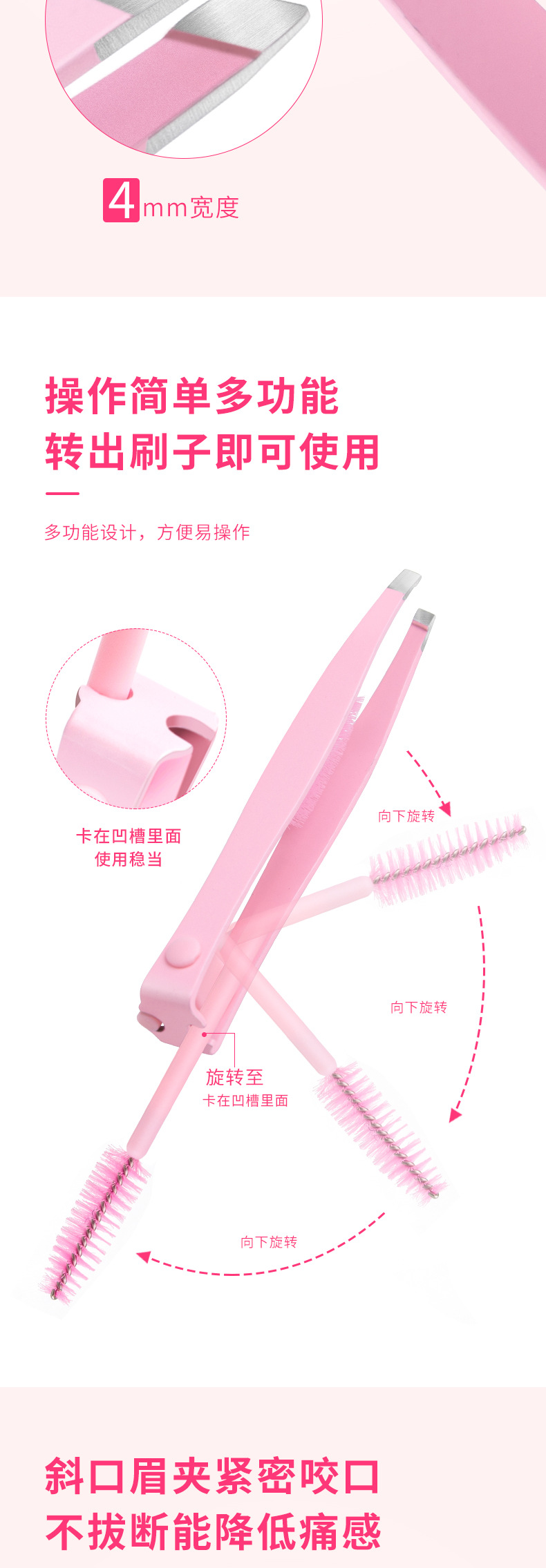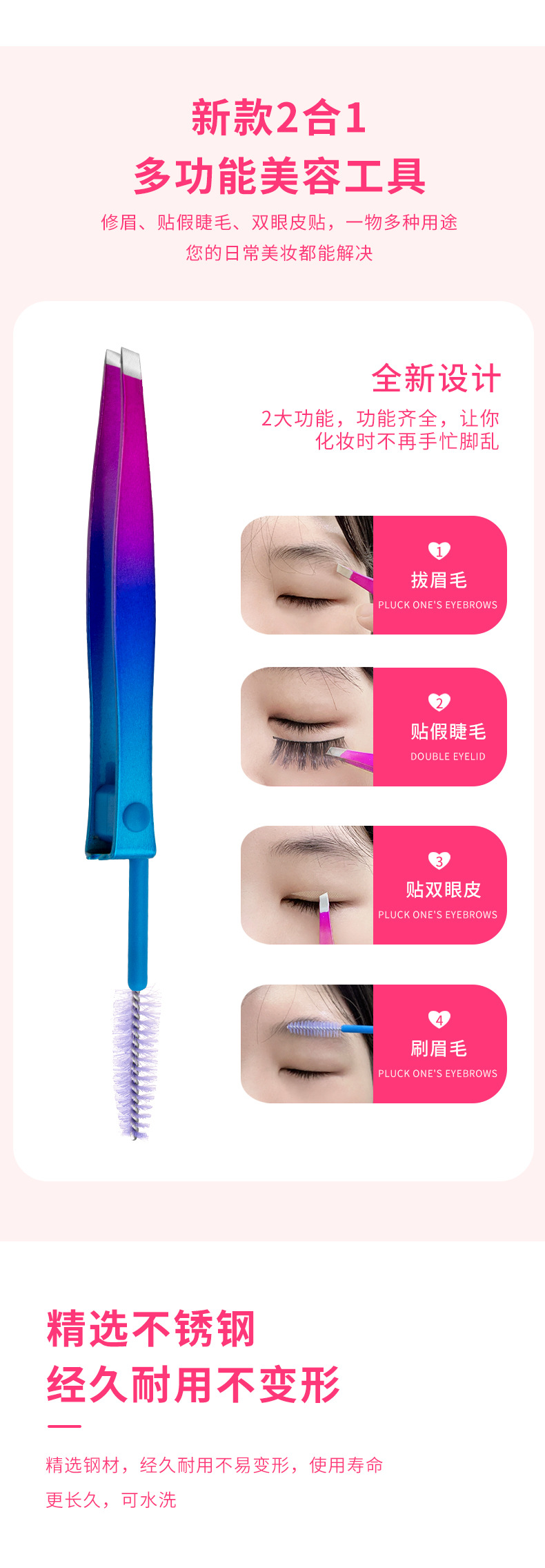 新款不锈钢假睫毛辅助器眉夹眉梳睫毛夹 2合1睫毛镊子眉毛夹