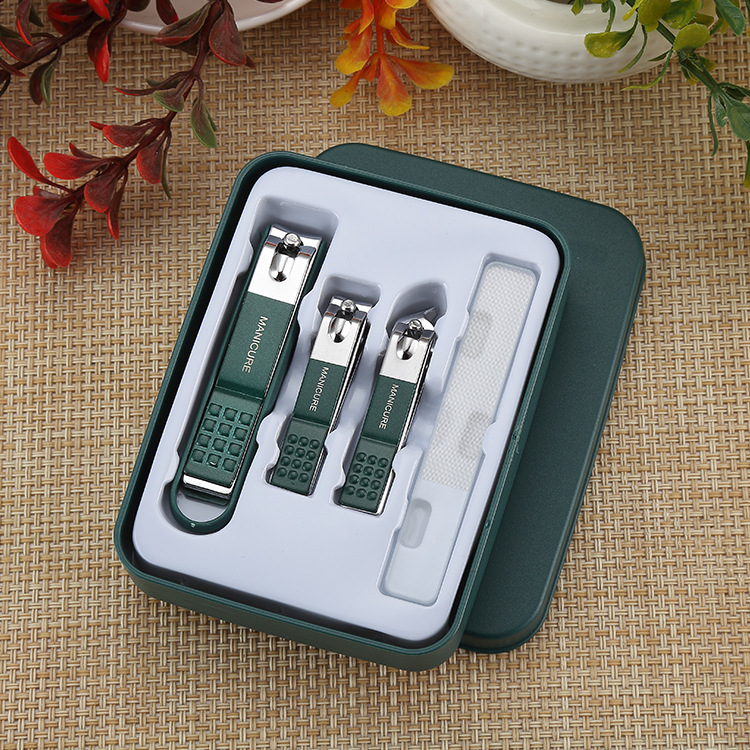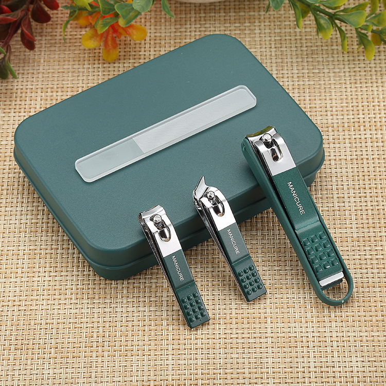 墨绿盒装指甲剪套装 防飞溅指甲刀单个平口指甲钳玻璃挫四件套