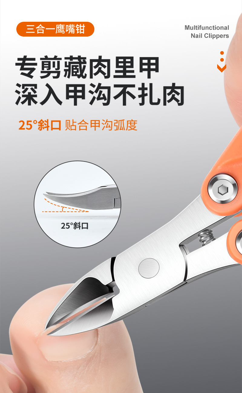折叠死皮钳美容钳创意鹰嘴钳甲沟嵌甲钳子多功能便携指甲钳指甲剪