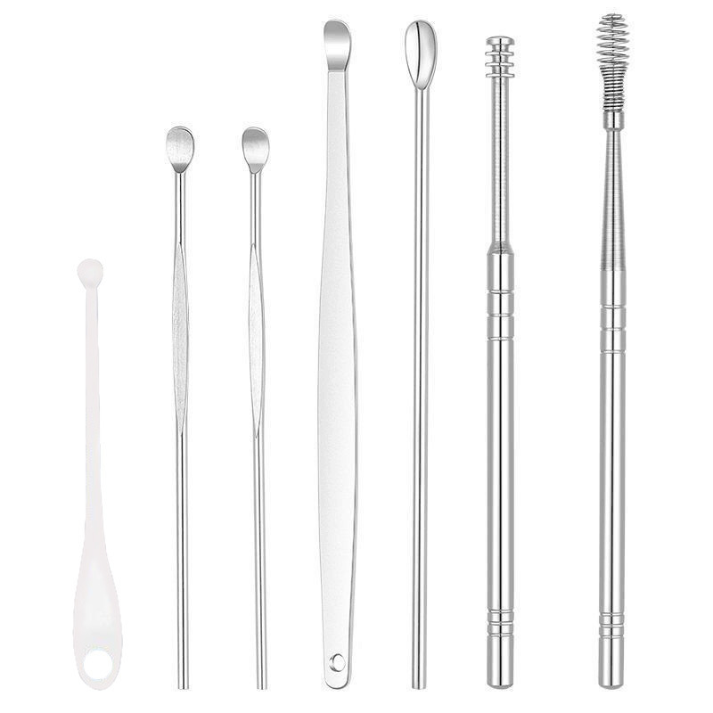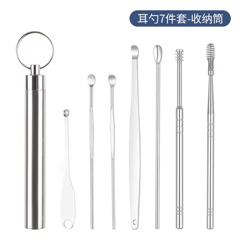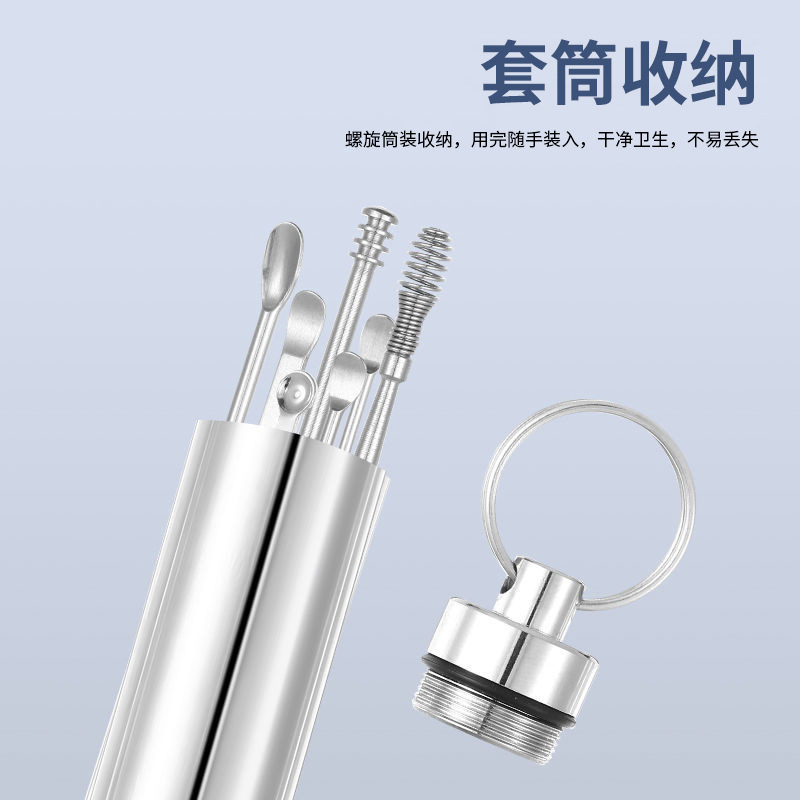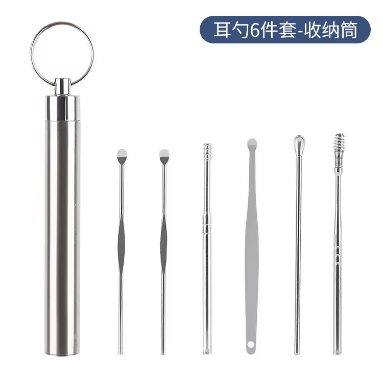 工厂批发不锈钢耳挖勺6件套掏耳勺旋转弹簧耳勺掏耳采耳工具套装
