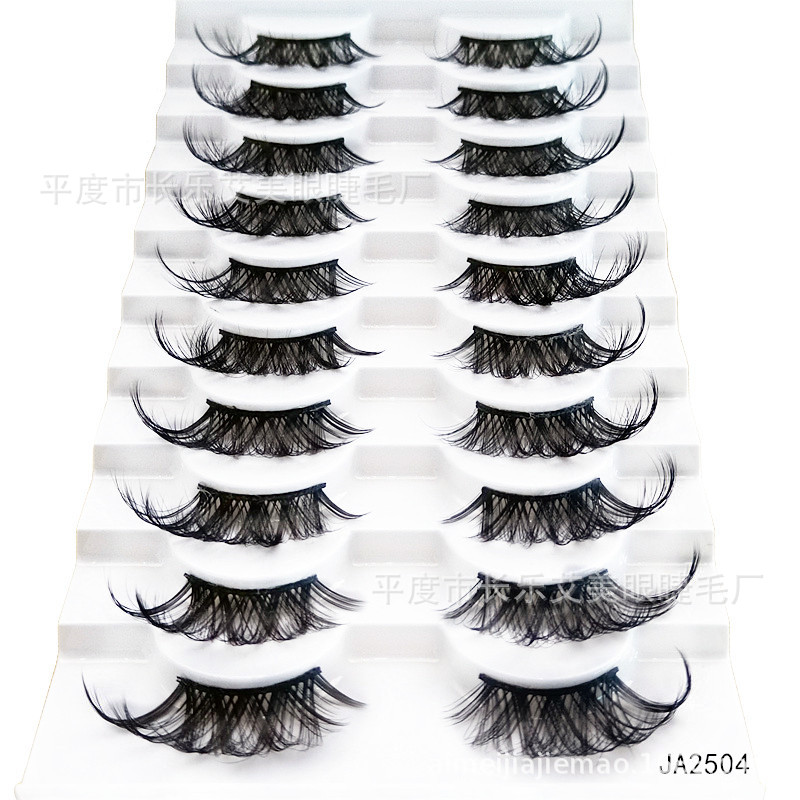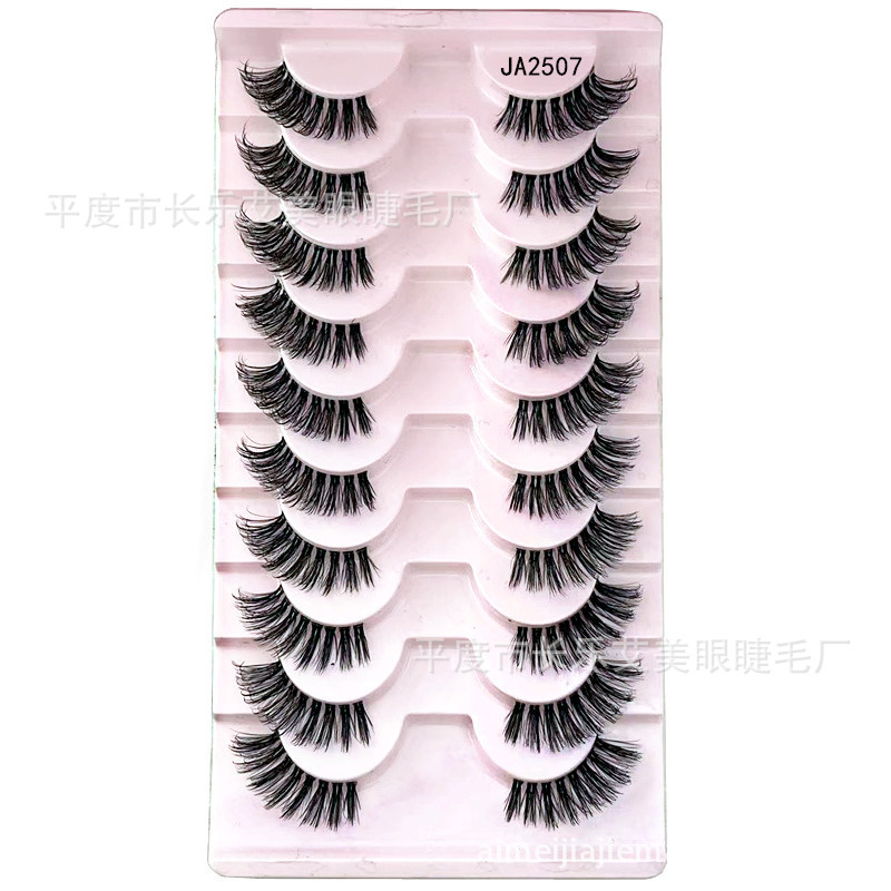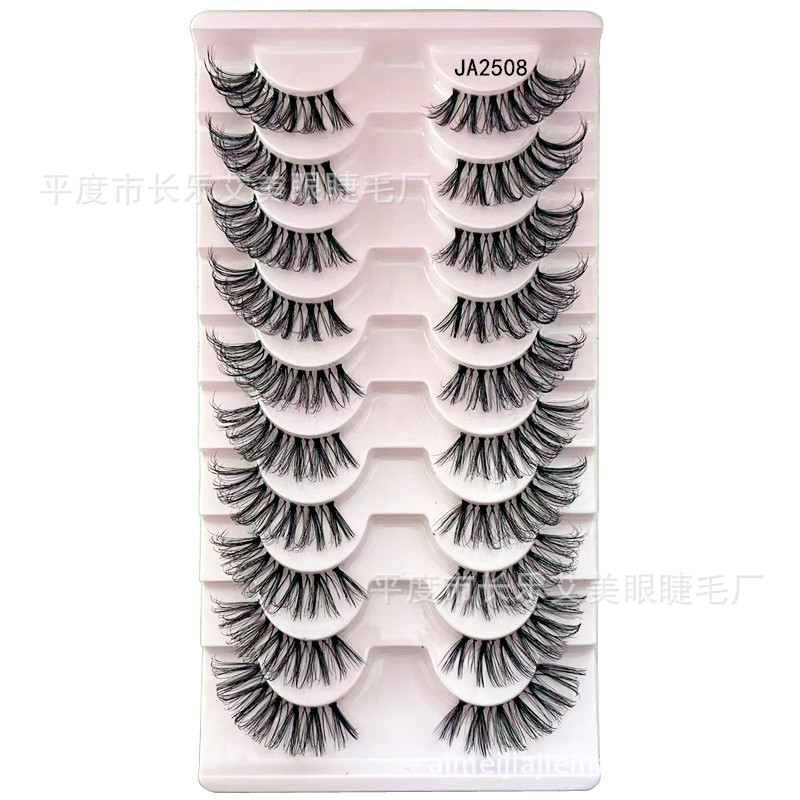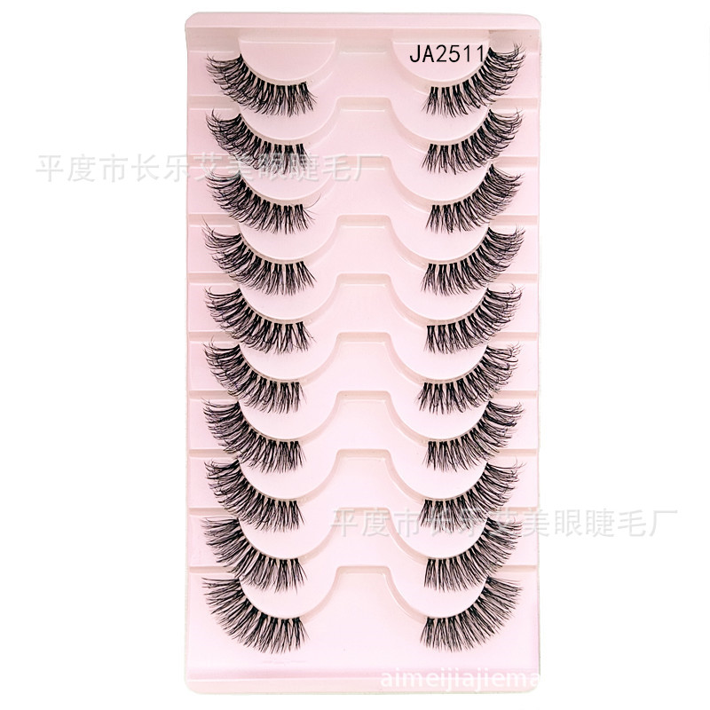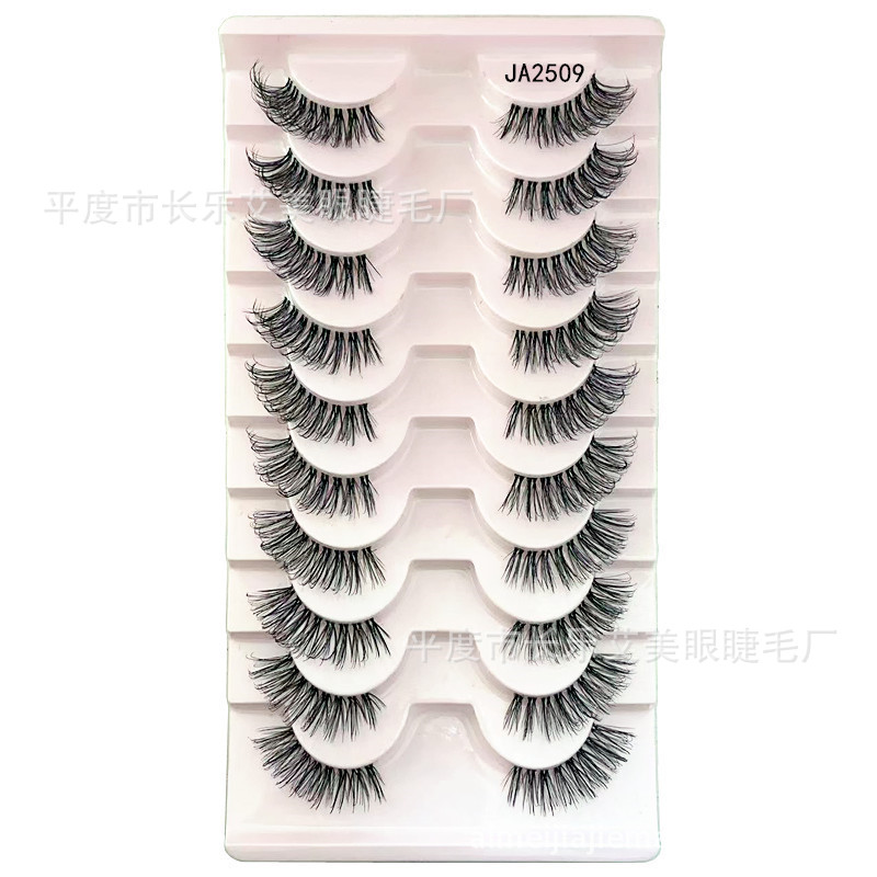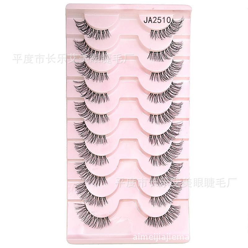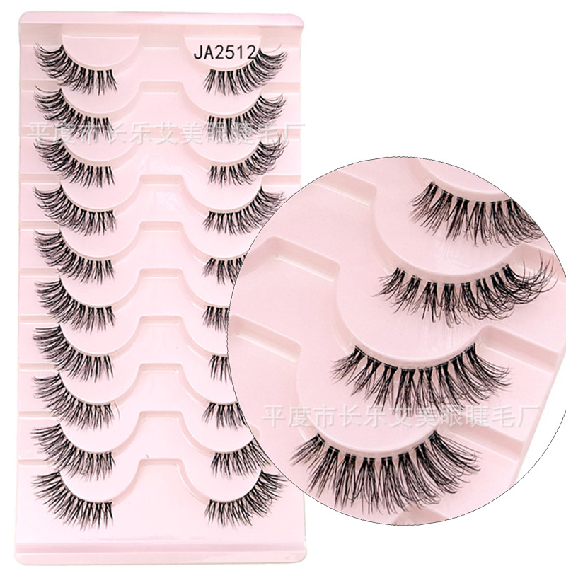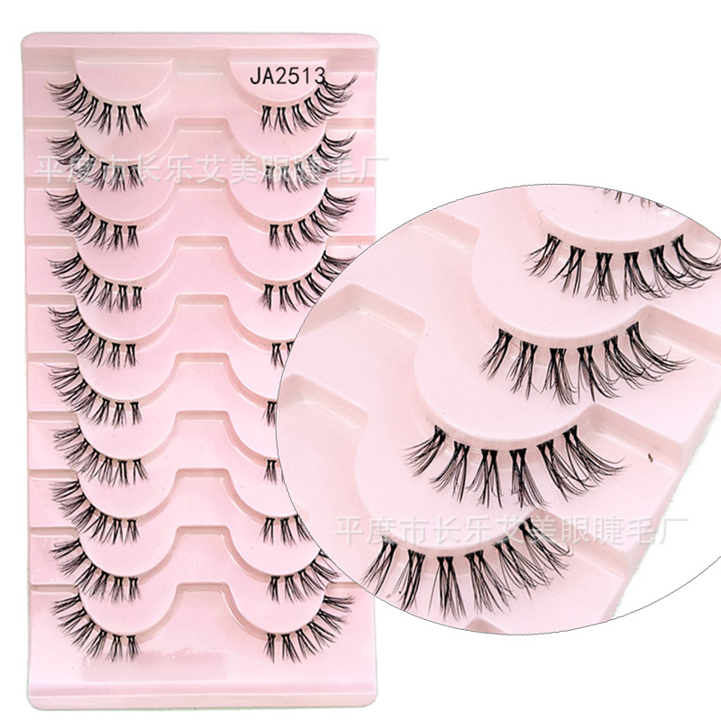 十对装眼尾拉长半截睫毛前短后长假睫毛透明梗自然睫毛平度睫毛