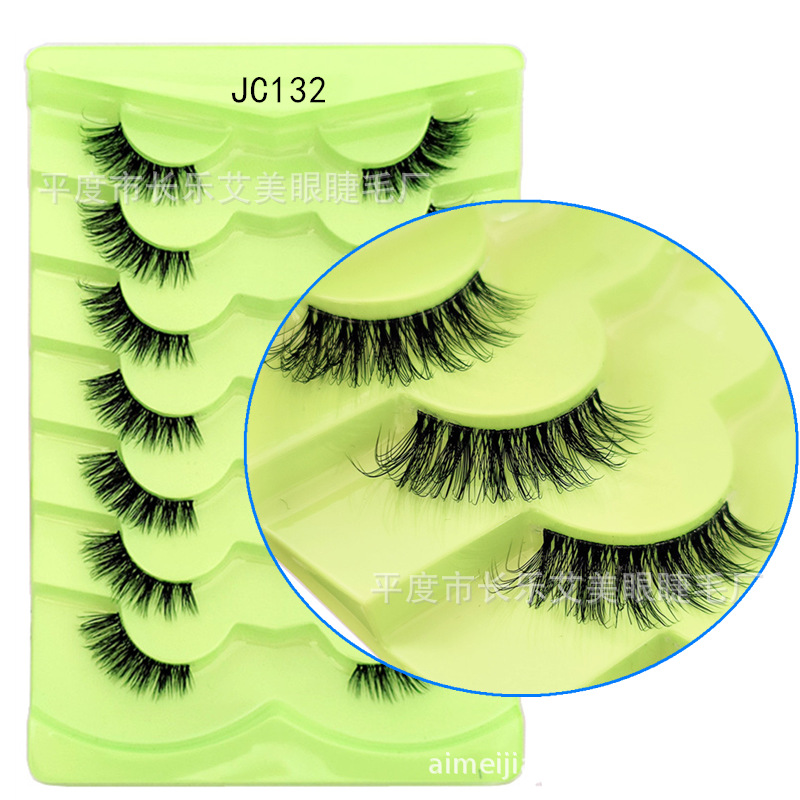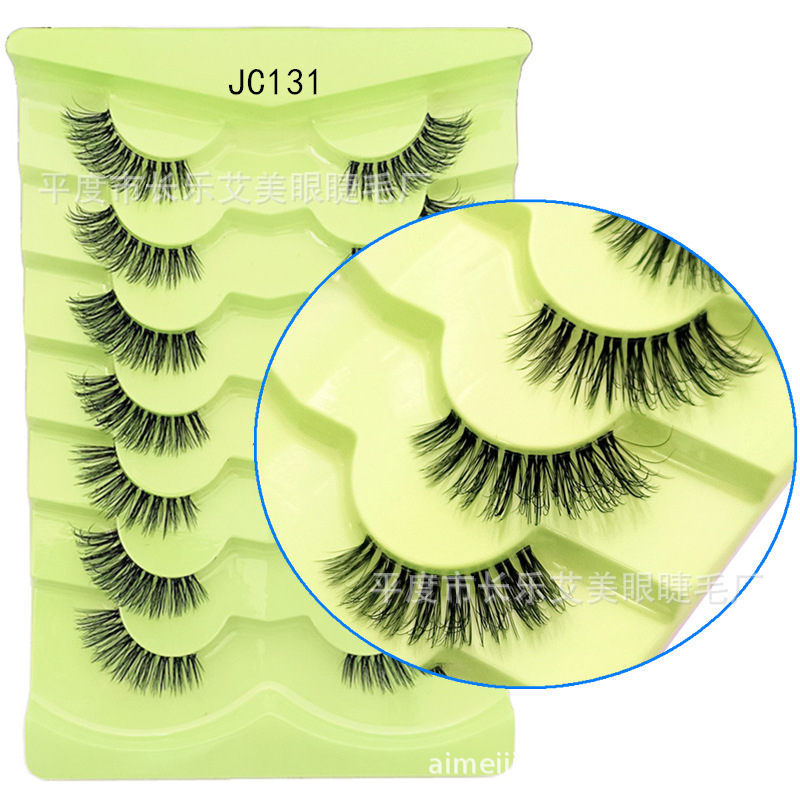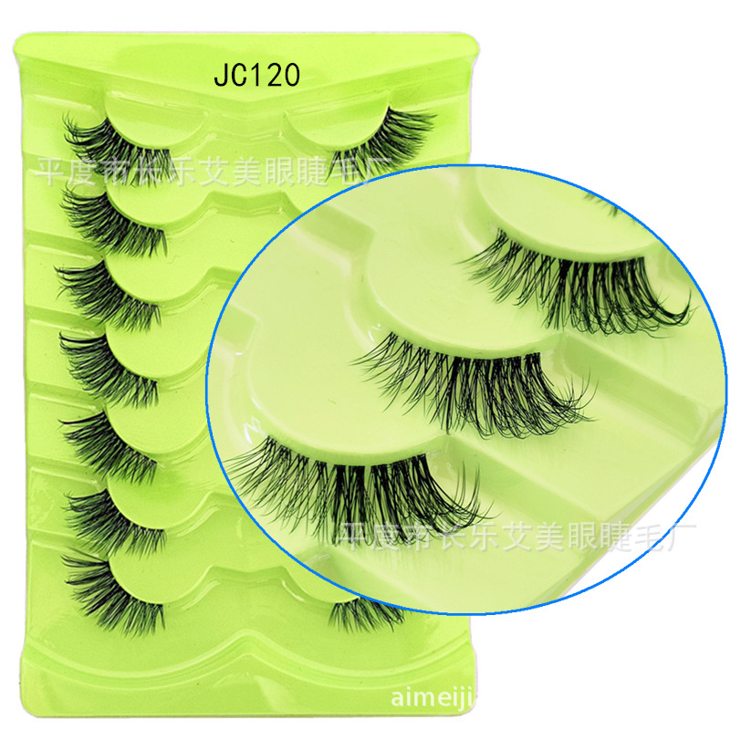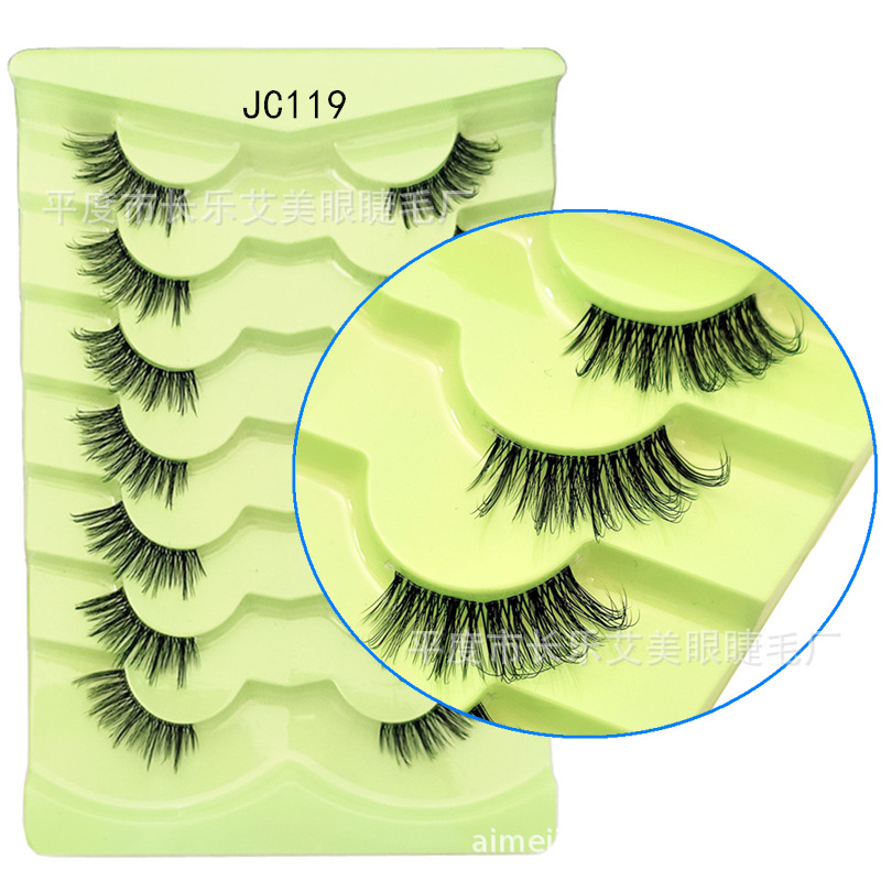 7对装跨境爆款眼尾拉长透明梗猫眼假睫毛斜飞狐睫毛懒人纯野炸毛