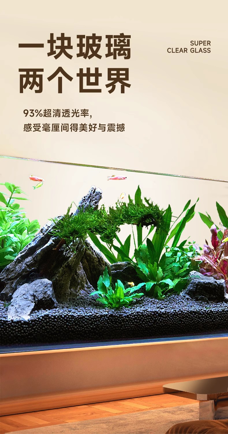 2024新款超清玻璃热弯鱼缸桌面小型水族箱客厅水草造景乌龟生态缸