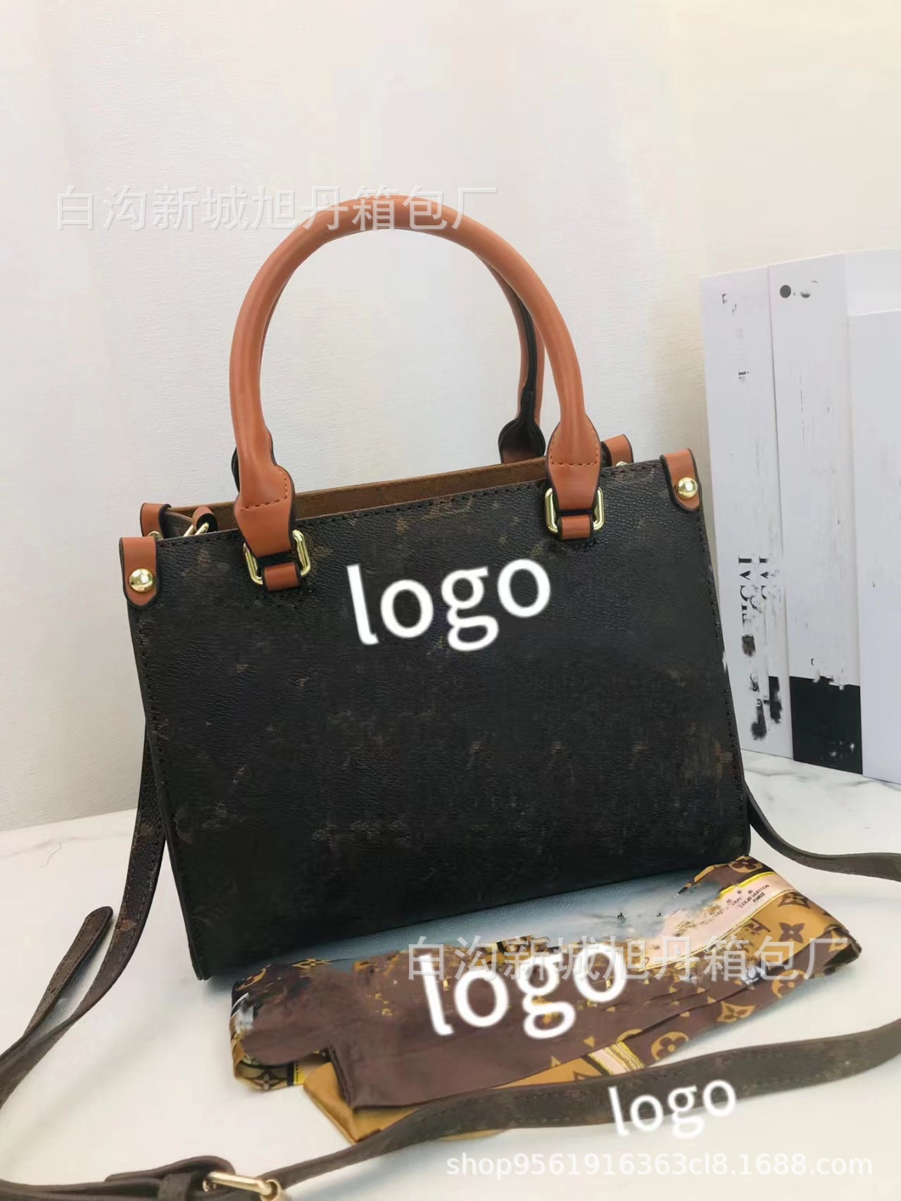 2023新款潮时尚老花手提托特包高级感百搭单肩斜挎女包