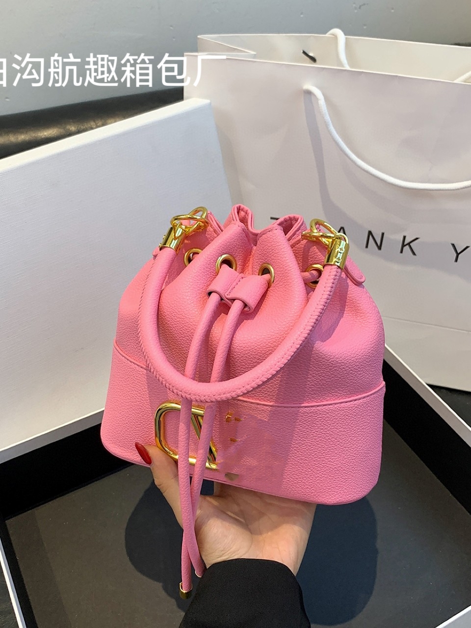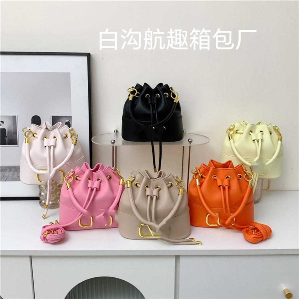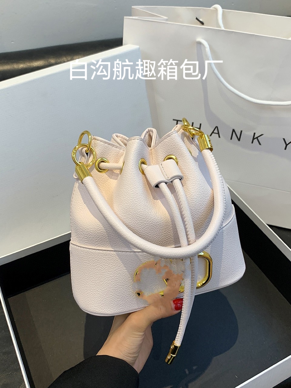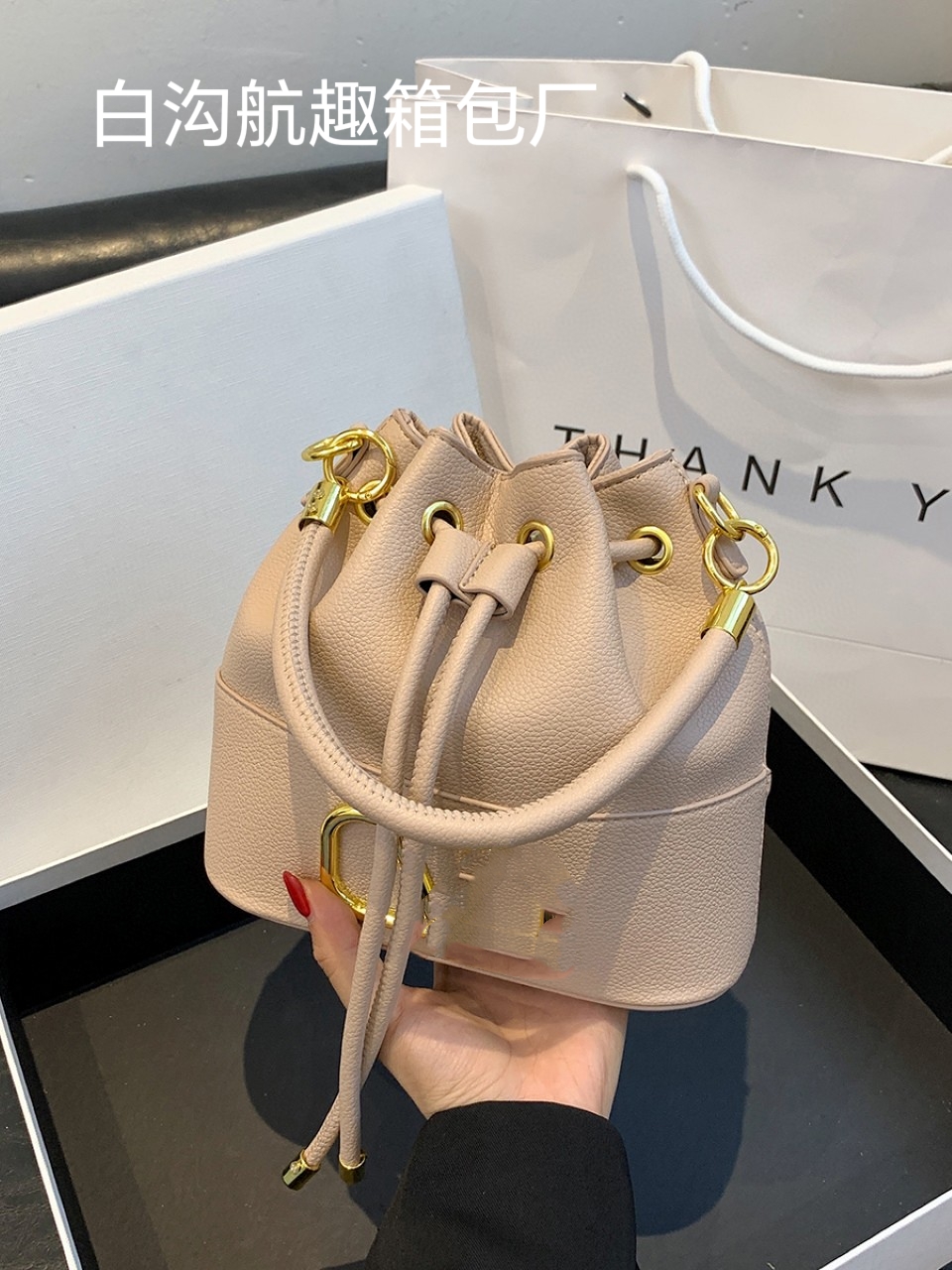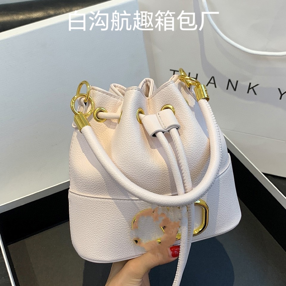 华家甜美气质少女水桶包2024新款高级时尚单肩斜挎手提水桶包
