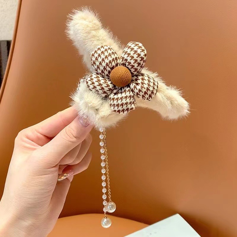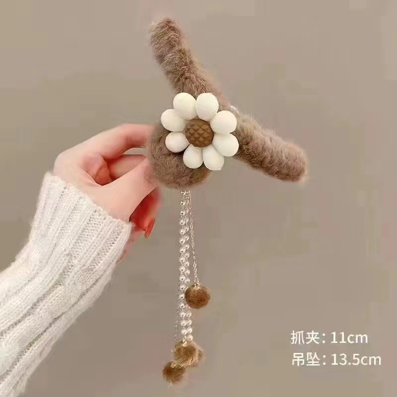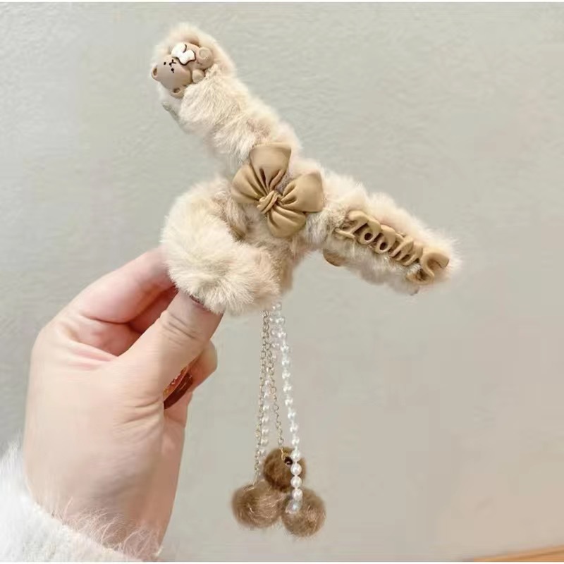 秋冬爱心流苏吊坠毛球发夹毛绒抓夹后脑勺发抓顶夹发饰头饰品女