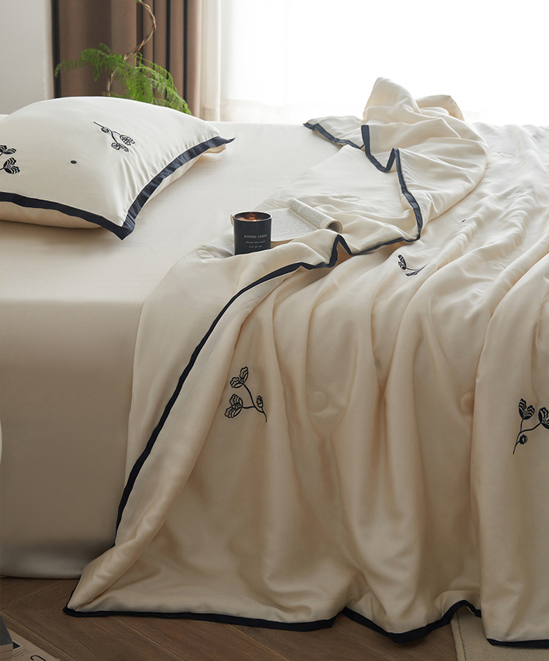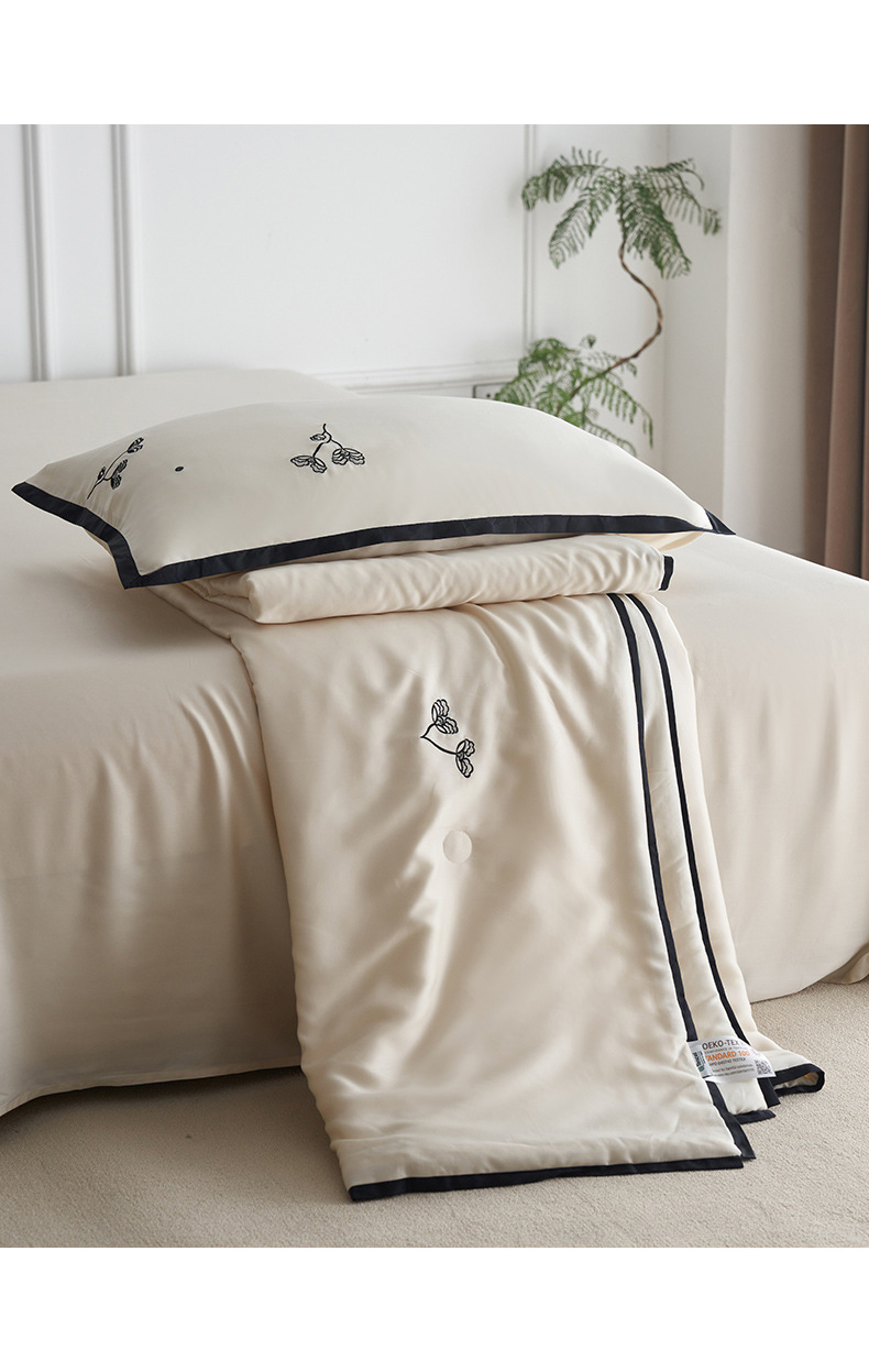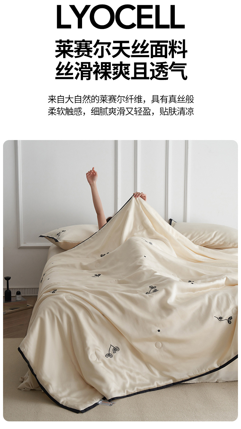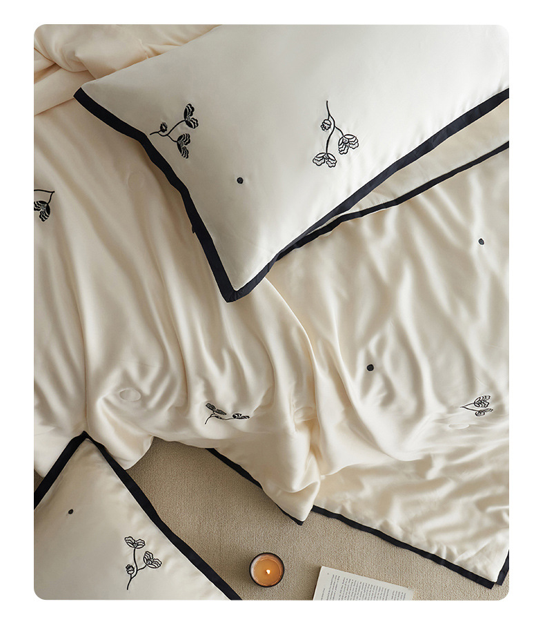 A类轻奢100莱赛尔天丝夏被四件套刺绣宽边夏季家居床单床上用品
