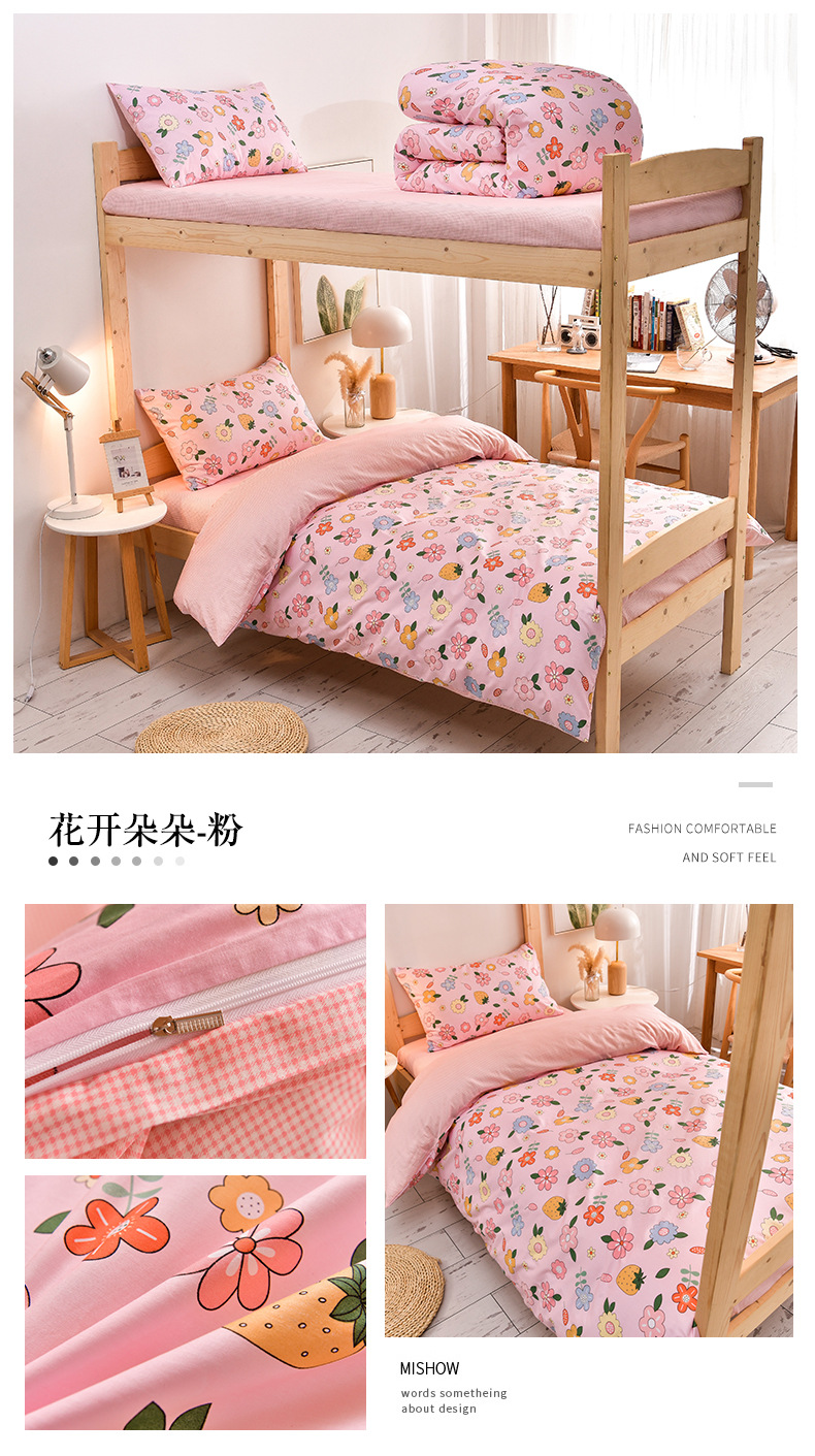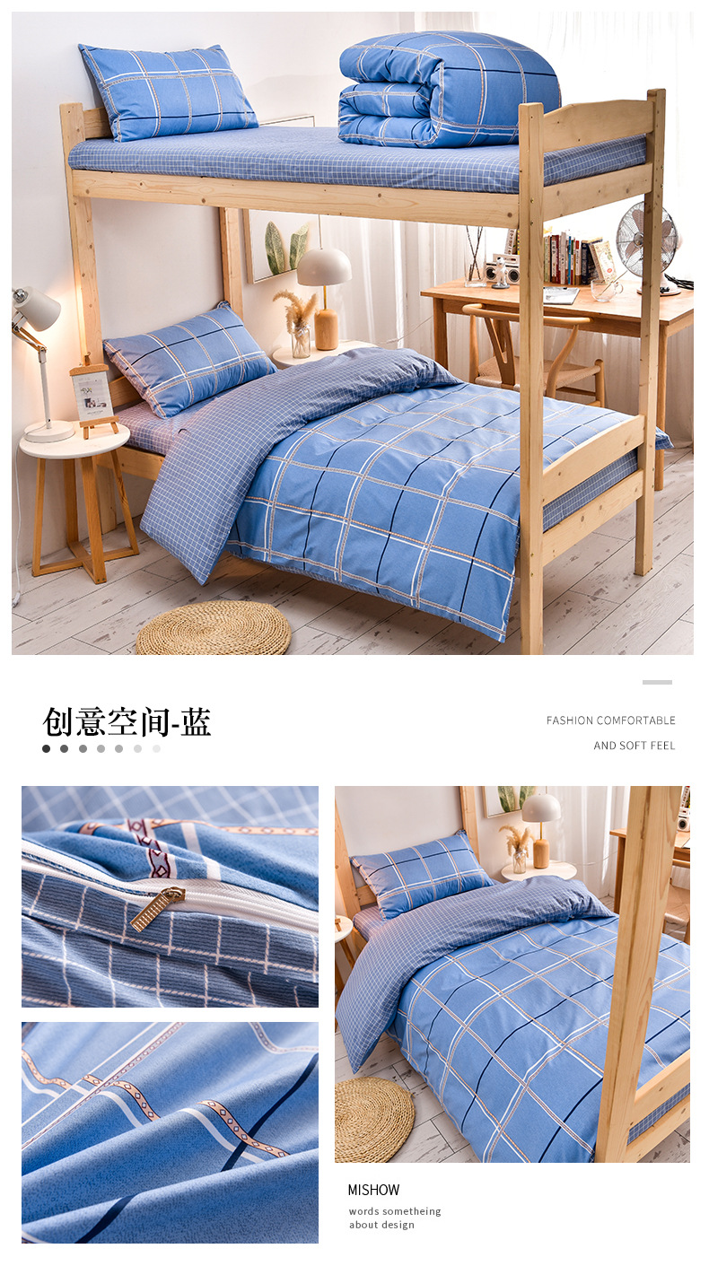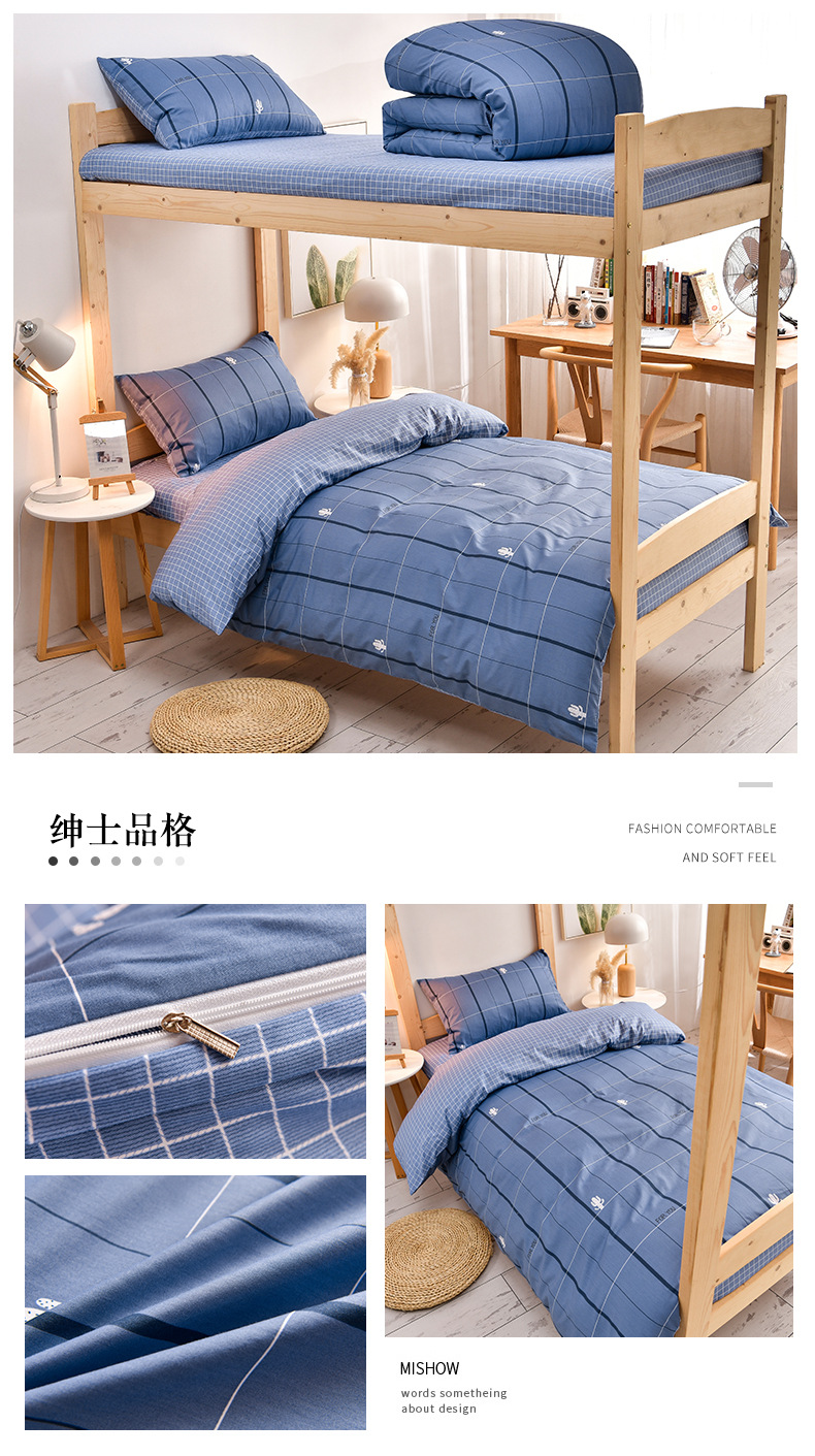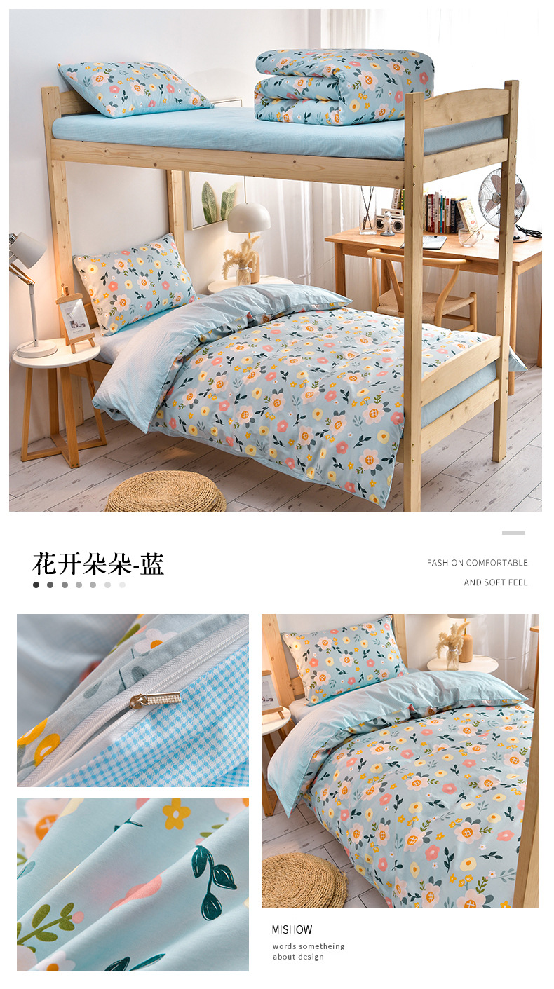 全棉学生宿舍床单三件套单人床上用品被褥全套一整套寝室员工六件
