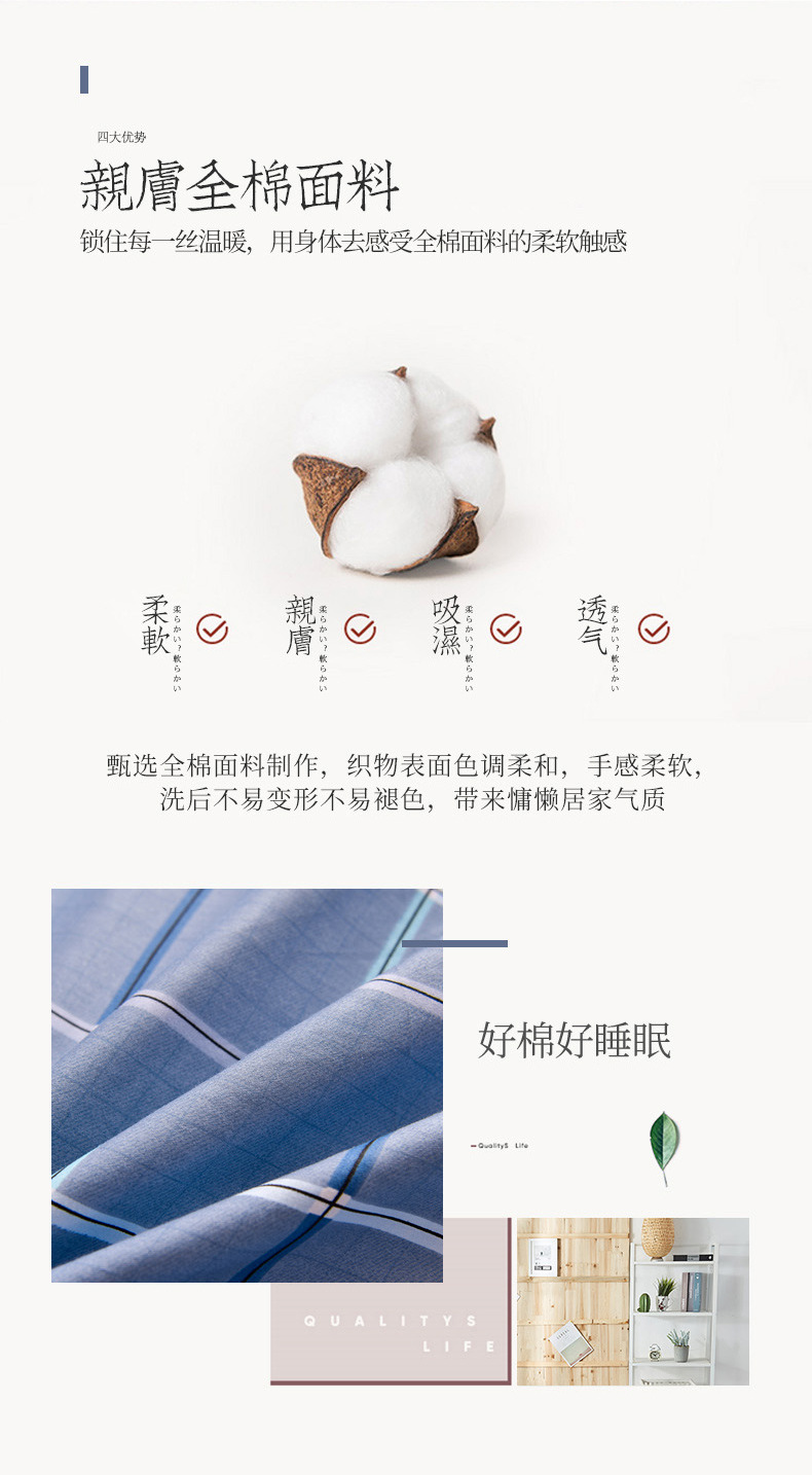 | suit four: three-piece set +2.50kg cotton quilt inner +2.00kg cotton mattress + single pillow insert(套装四:三件套+5斤棉花被芯+4斤棉花床垫+单人枕芯) | USD $54.95 | 999 set available |