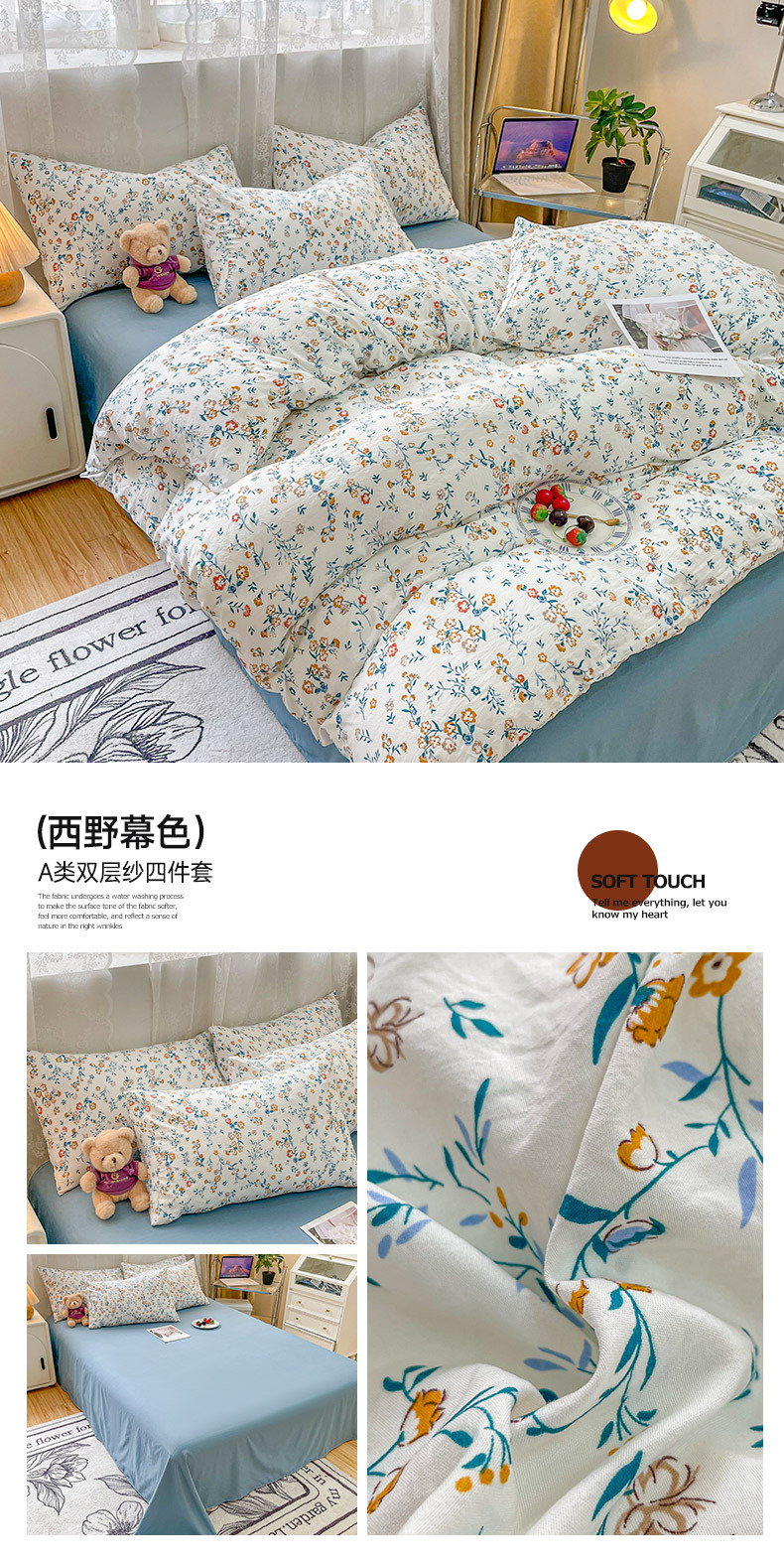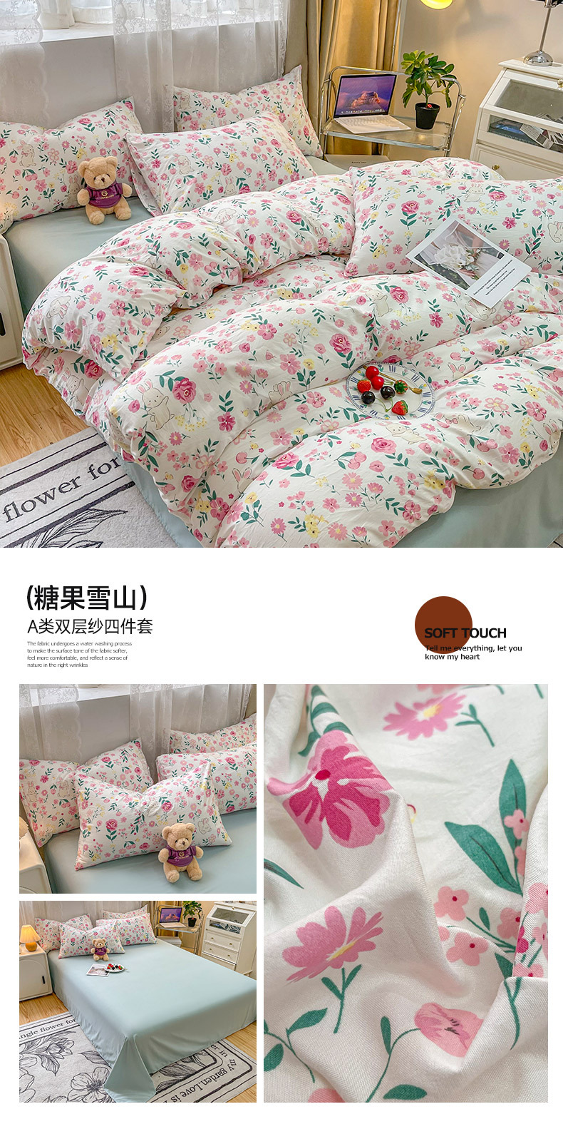 a类母婴级床上用品三件套 双层纱被套床单四件套一件代发厂家批发