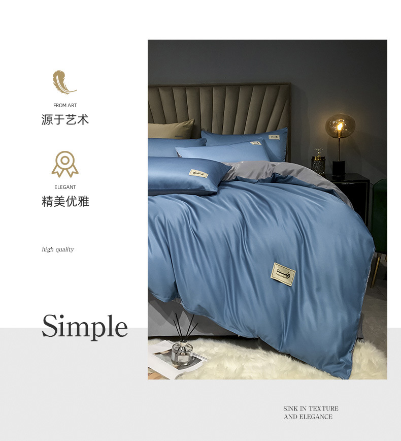 新款纯色60水洗天丝四件套简约时尚春夏凉感真丝床单被套床上用品