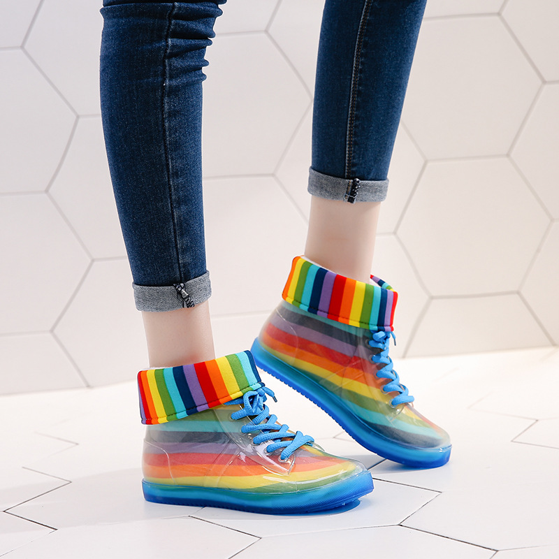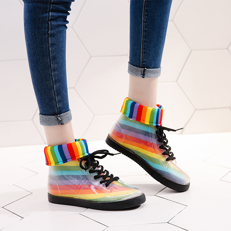 韩版防水鞋透明加绒雨靴女学生水鞋防滑耐磨胶鞋时尚果冻短筒雨鞋