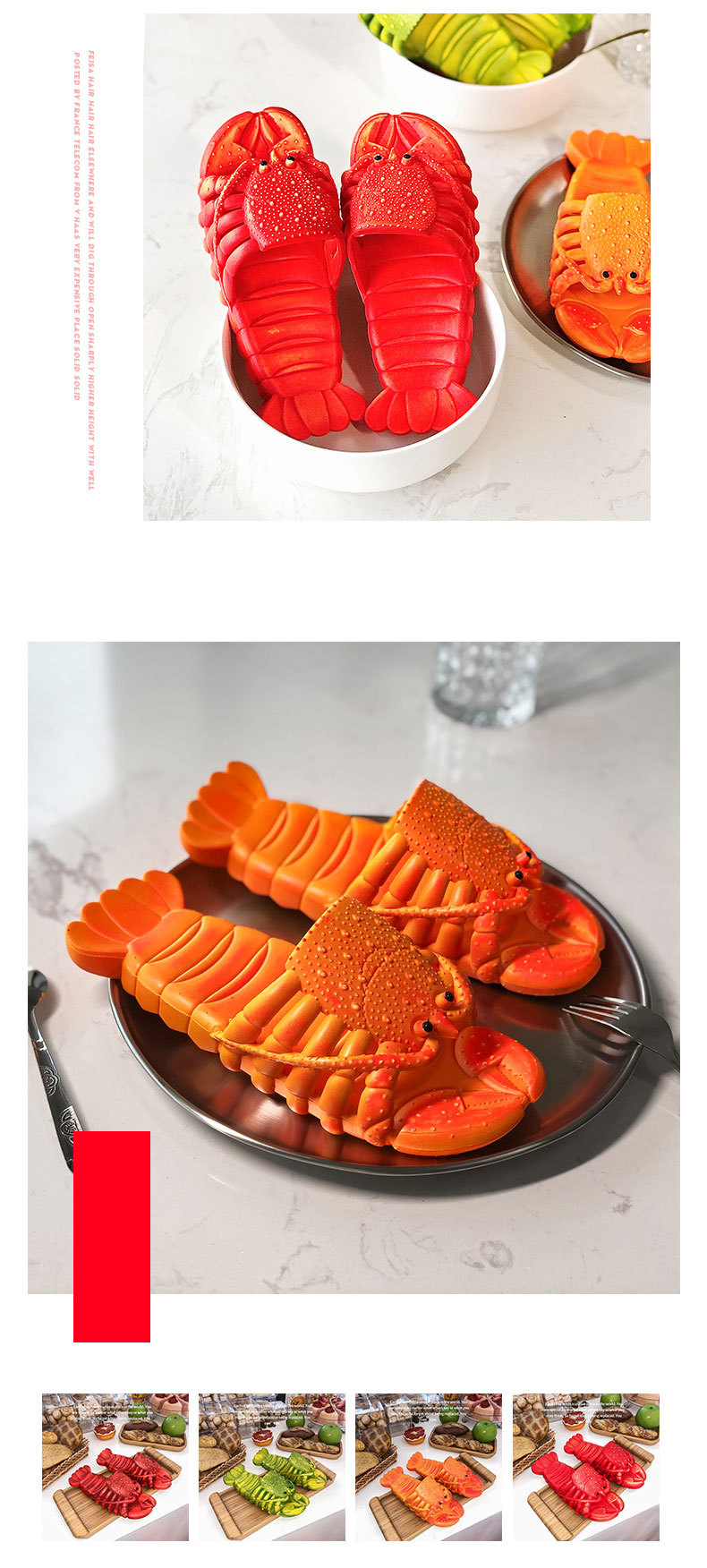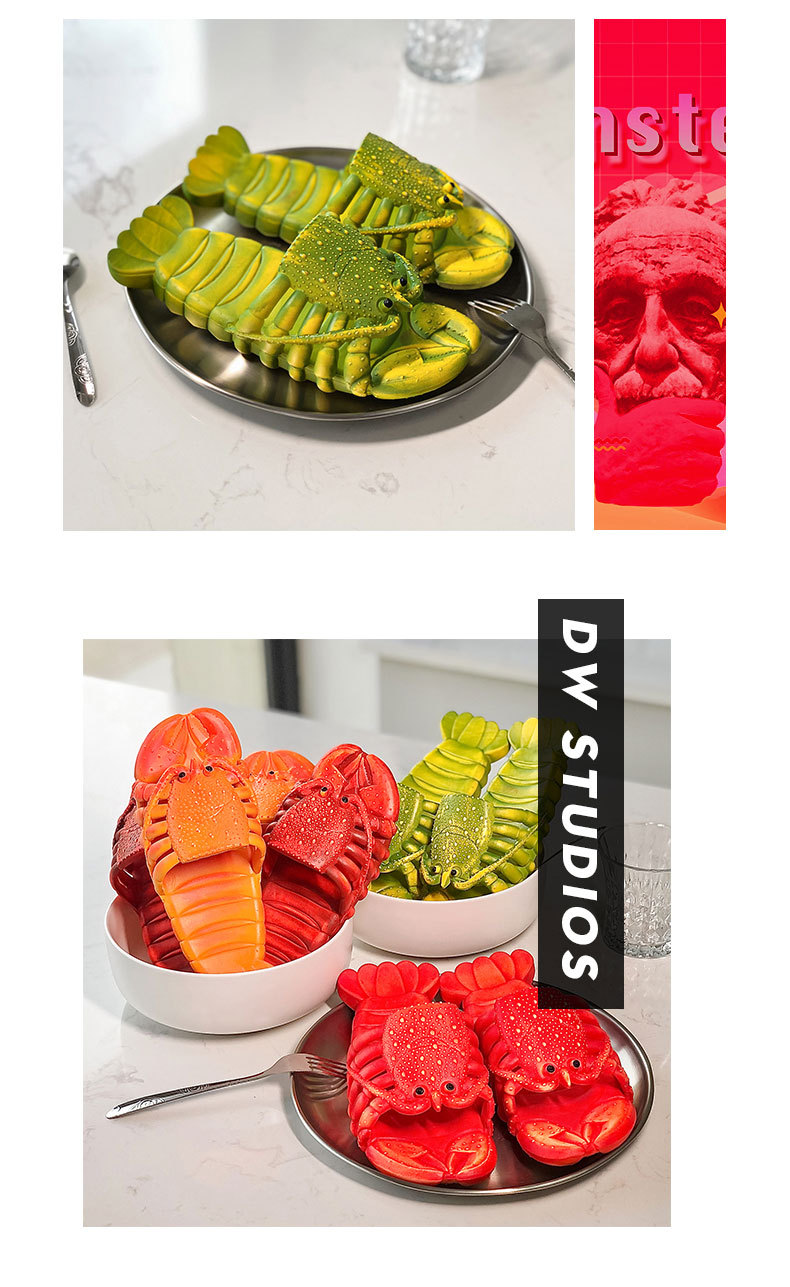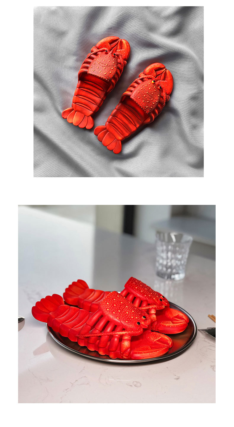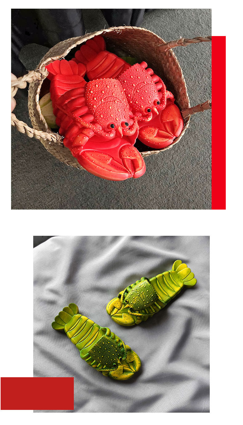 2024网红新款小龙虾沙滩拖鞋创意可爱亲子一字拖个性搞怪拖鞋批发