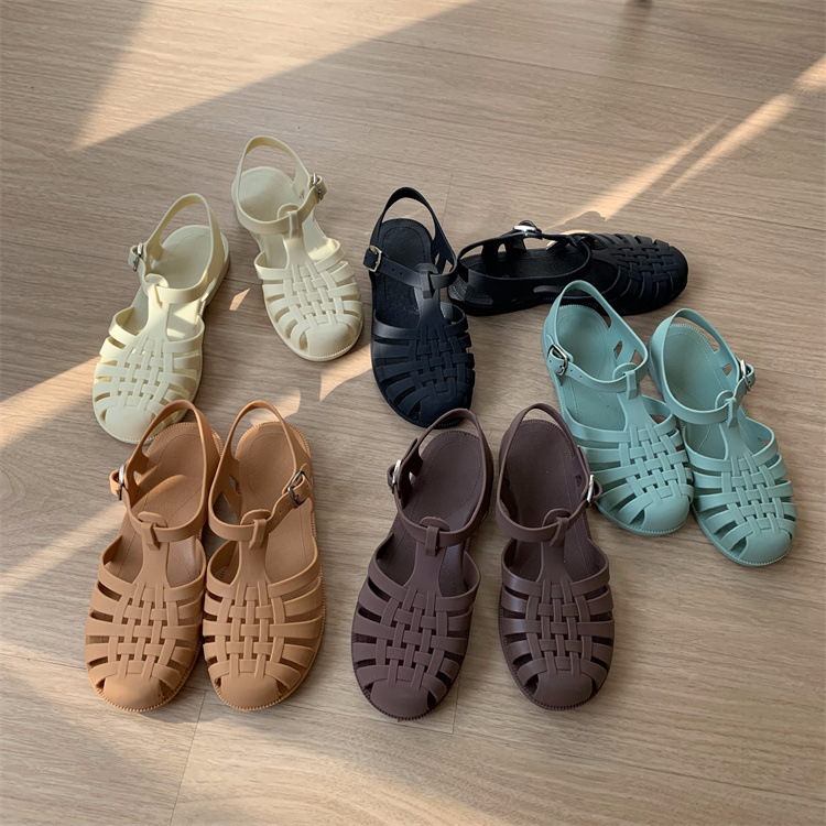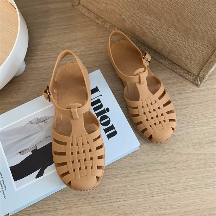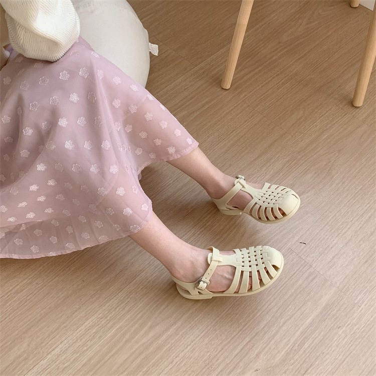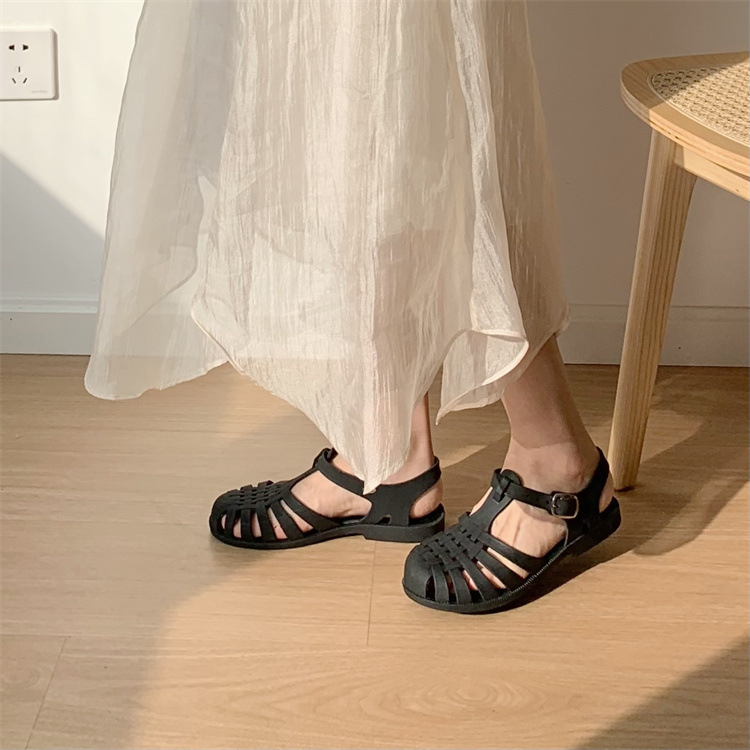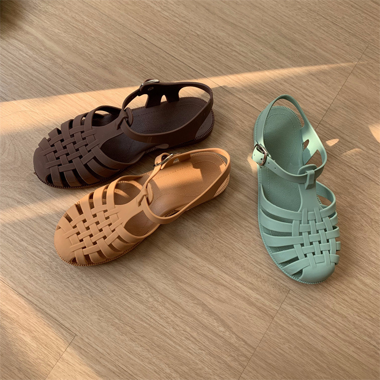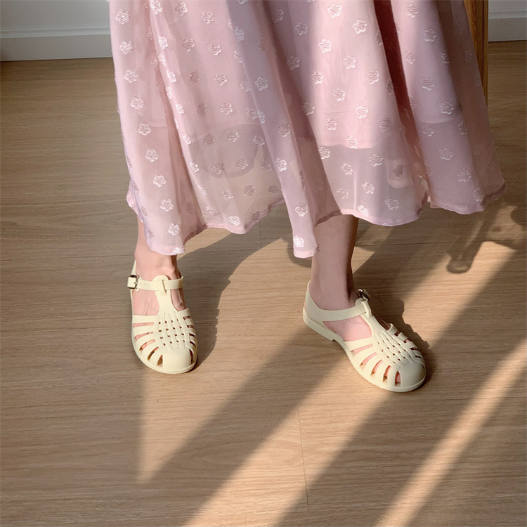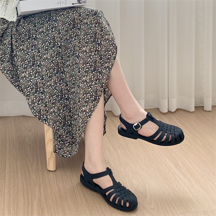 2024新款罗马凉鞋软质果冻浅口平跟包头气质舒适女单鞋防滑塑胶鞋