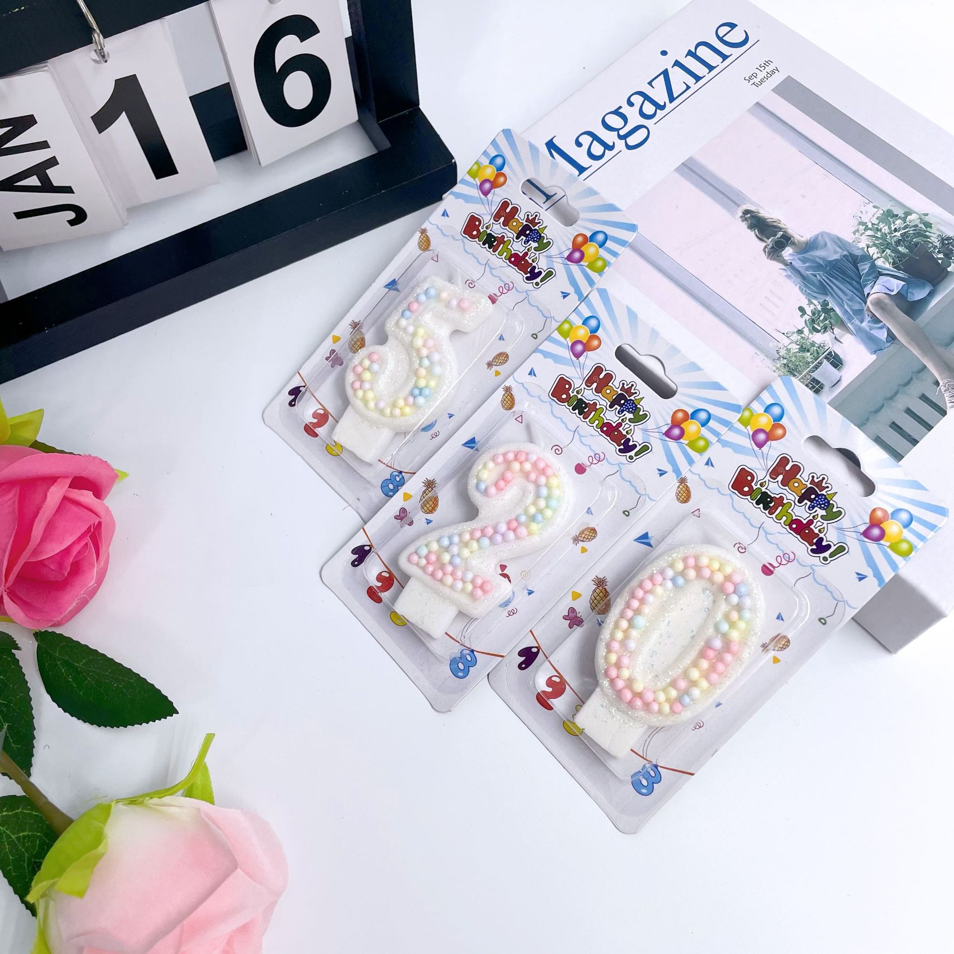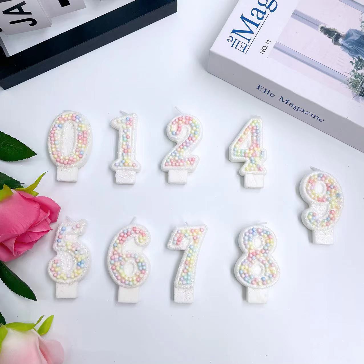 【产品名称】:马卡龙糖果颗粒数字蜡烛