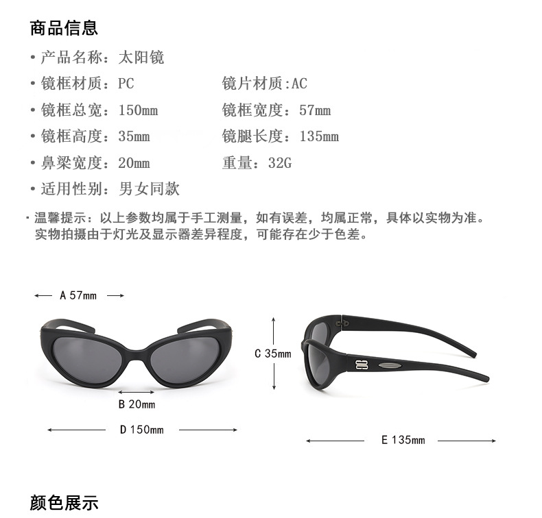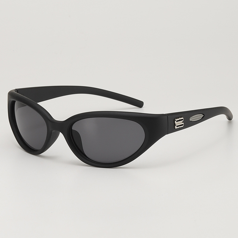 2024新款椭圆猫眼磨砂黑色gm墨镜防晒太阳镜户外运动骑行太阳眼镜
