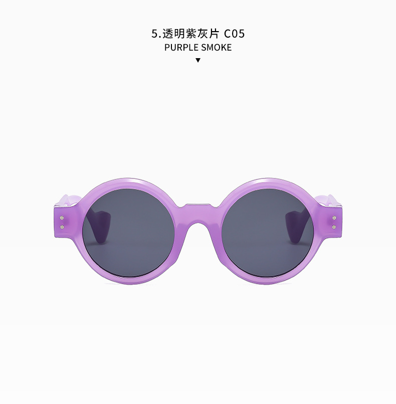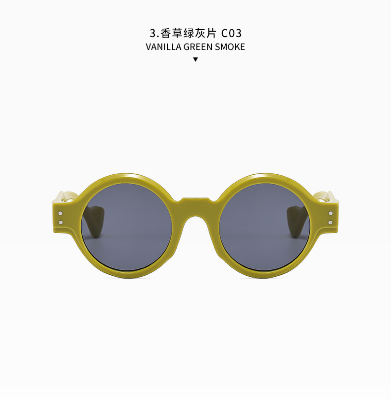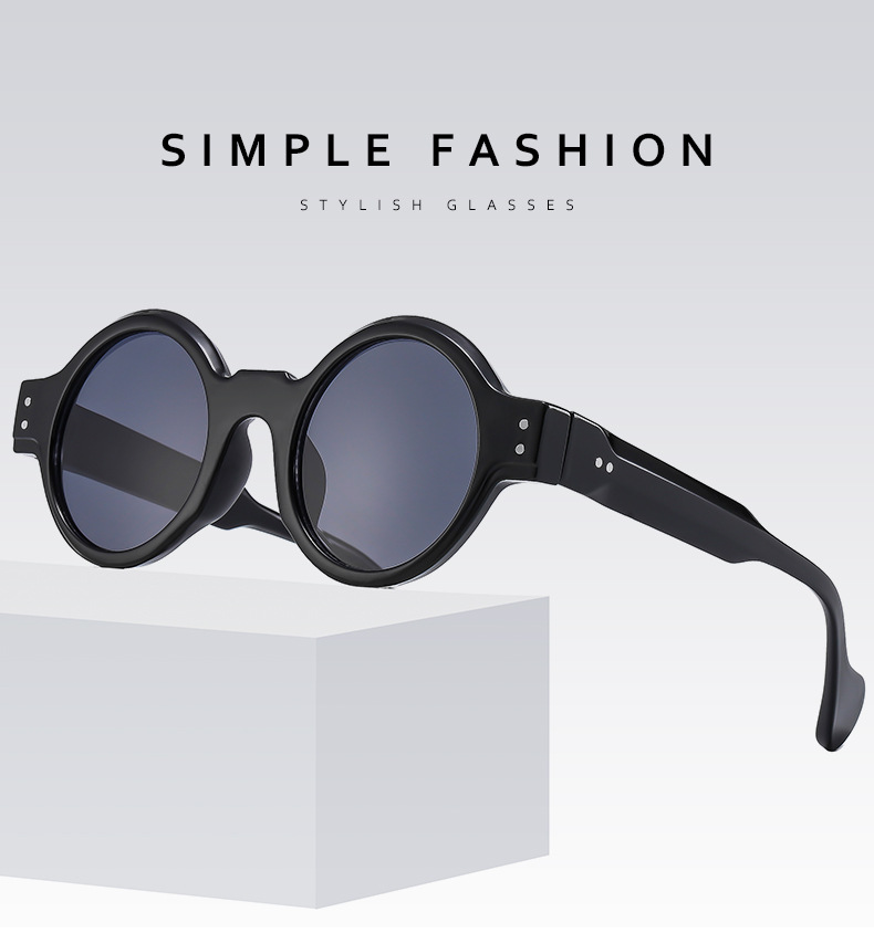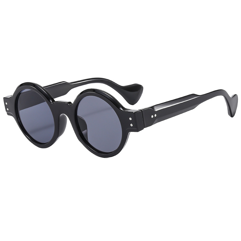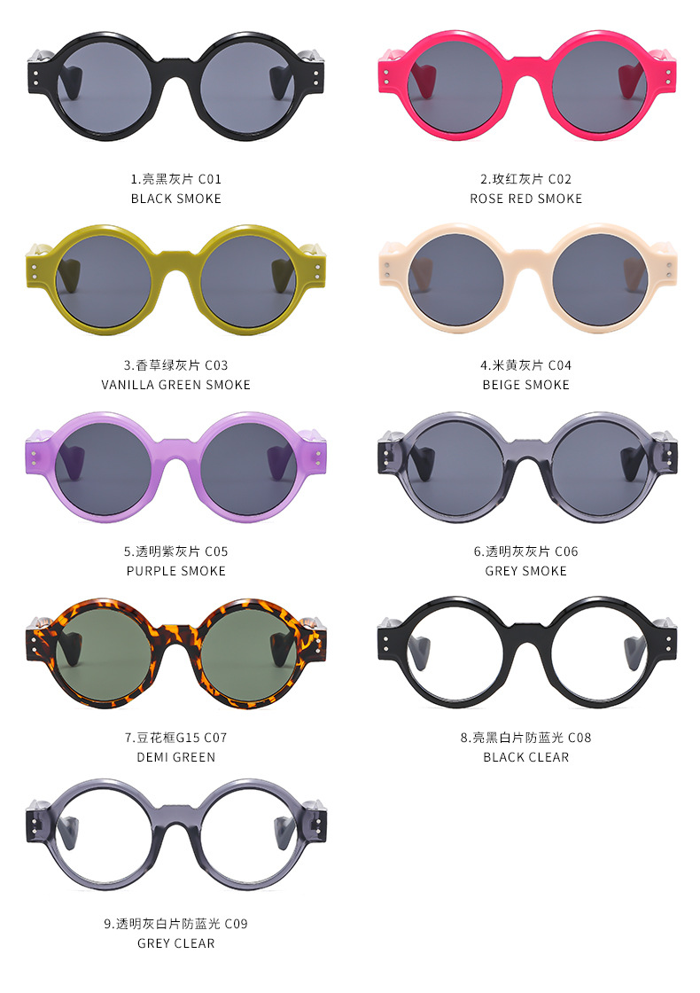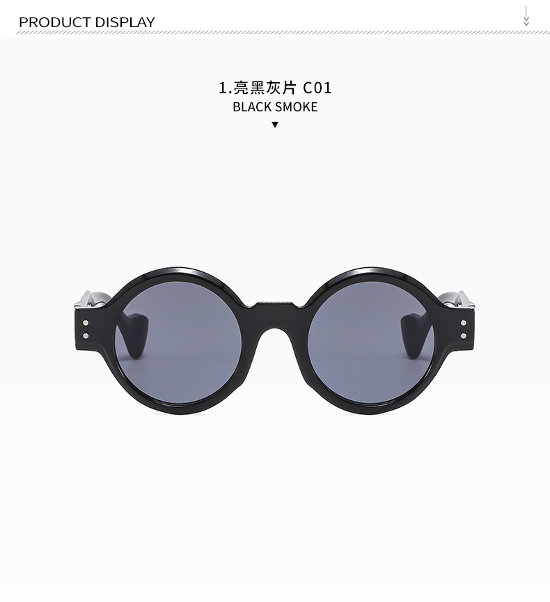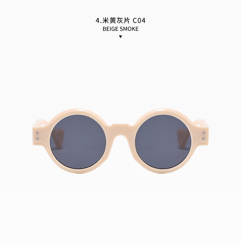 欧美经典圆形朋克休闲太阳镜时尚米钉粗腿墨镜男女潮百搭简约墨镜